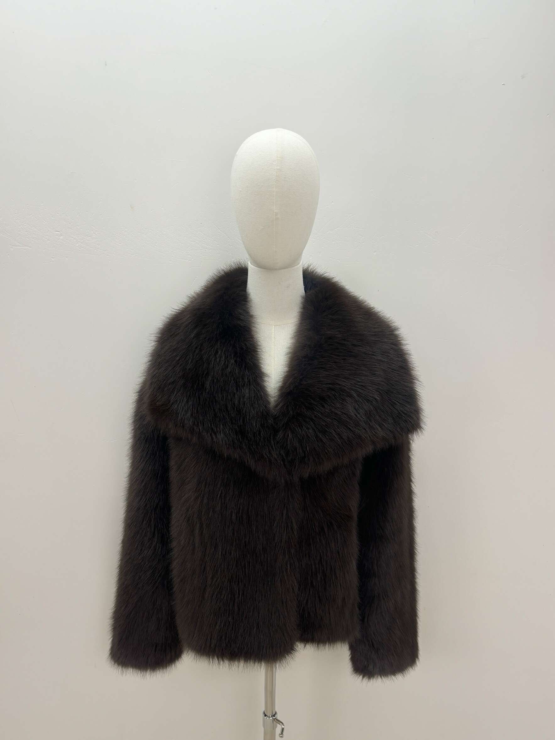 Elegancka kurtka o krótkim kroju, wykonana z miękkiego, puszystego materiału. Modny czekoladowy kolor i szeroki kołnierz nadają szyku każdej stylizacji.