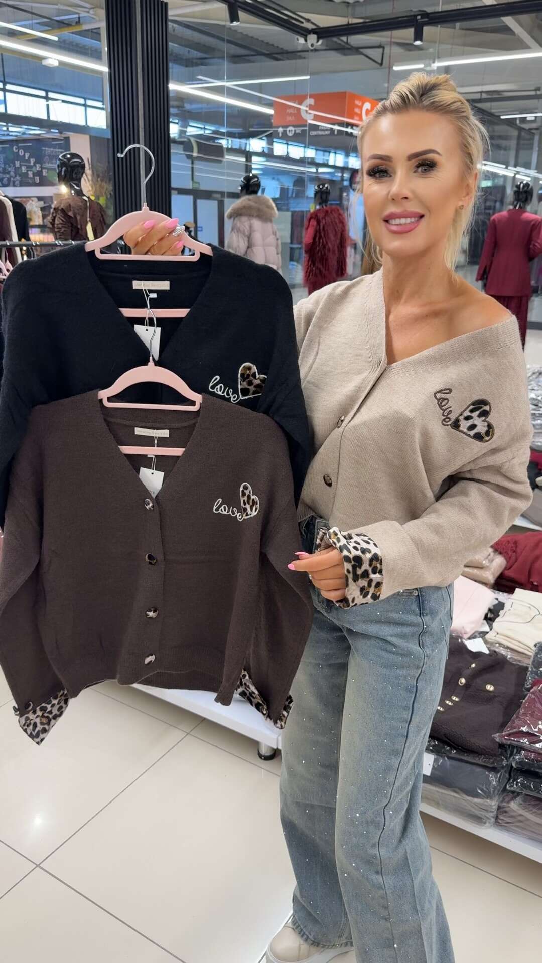 Sweter LUNA to propozycja dla klientek szukających modnego połączenia klasyki z nowoczesnymi akcentami. Dostępny w kolorach: czekoladowy, granat oraz beż, co daje możliwość wyboru zgodnie z aktualnymi trendami. Sweter wyróżnia się efektownymi mankietami oraz aplikacją z motywem panterki, podkreśloną napisem „love”. Uniwersalny fason sprawdzi się zarówno w stylizacjach codziennych, jak i podczas spotkań w biurze. Wysoka jakość materiału gwarantuje komfort noszenia i trwałość produktu, a ponadczasowa kolorystyka ułatwia sprzedaż hurtową na cały sezon. Idealny wybór do uzupełnienia różnorodnej oferty sklepu z odzieżą damską!