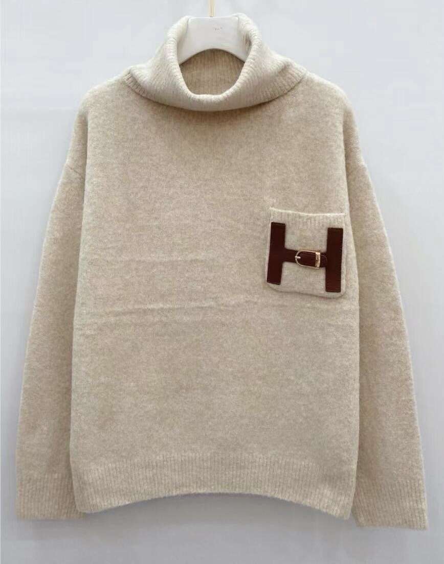 Miękki sweter z wysokim golfem i designerską kieszenią z ozdobnym detalem. Postaw na ciepło i wyjątkowy styl na chłodniejsze dni.
