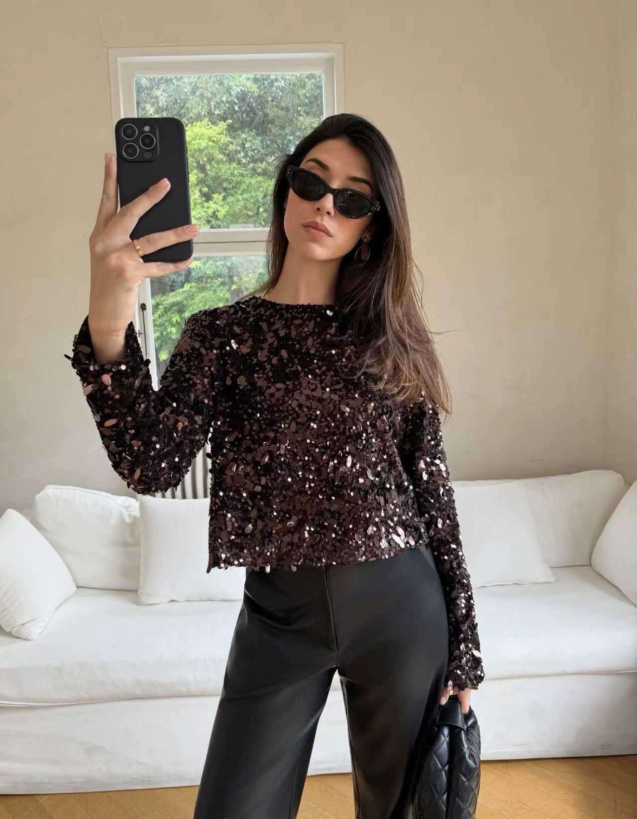 Efektowna bluzka damska z połyskującymi cekinami, idealna na wyjątkowe okazje. Modny, wygodny fason i ponadczasowy styl.