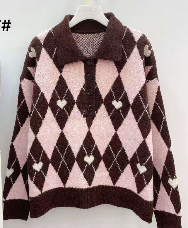 Sweter z kołnierzykiem w argyle z uroczymi serduszkami, miękki i wygodny krój idealny na każdą okazję.