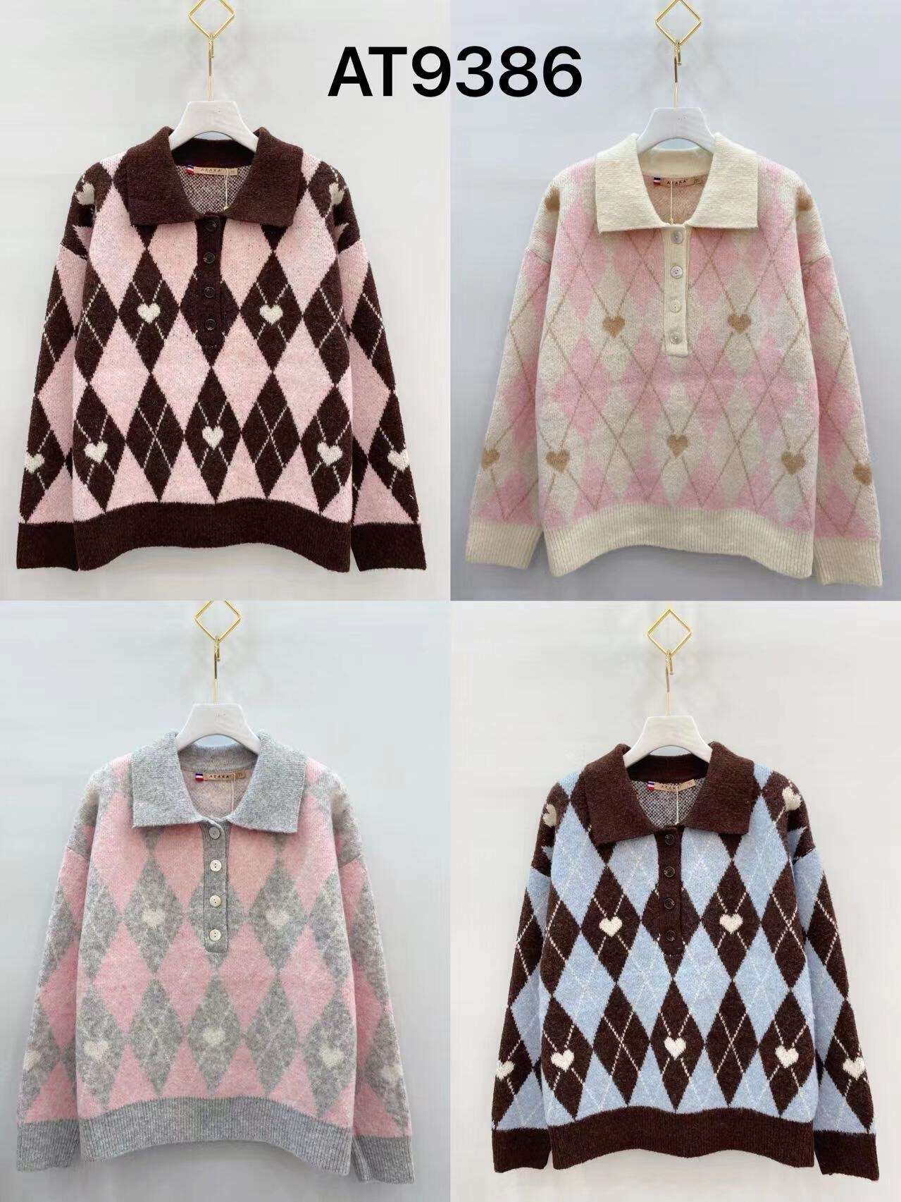 Sweter NOE to doskonała propozycja dla hurtowni poszukujących oryginalnych, kobiecych modeli na chłodniejsze dni. Dostępny w atrakcyjnych kolorach: szarym, ecru i czekoladowym, zachwyca ponadczasowym wzorem w romby urozmaiconym drobnymi serduszkami. Sweter wyróżnia się przytulnym materiałem, wygodnym fasonem z kołnierzykiem oraz funkcjonalnym zapięciem na guziki. Uniwersalny rozmiar i modne kolory sprawiają, że świetnie wpisuje się zarówno w casualowe, jak i bardziej wyjściowe stylizacje. Idealny do jeansów, eleganckich spodni czy spódnic – perfekcyjny wybór do asortymentu hurtowego na sezon jesień-zima!