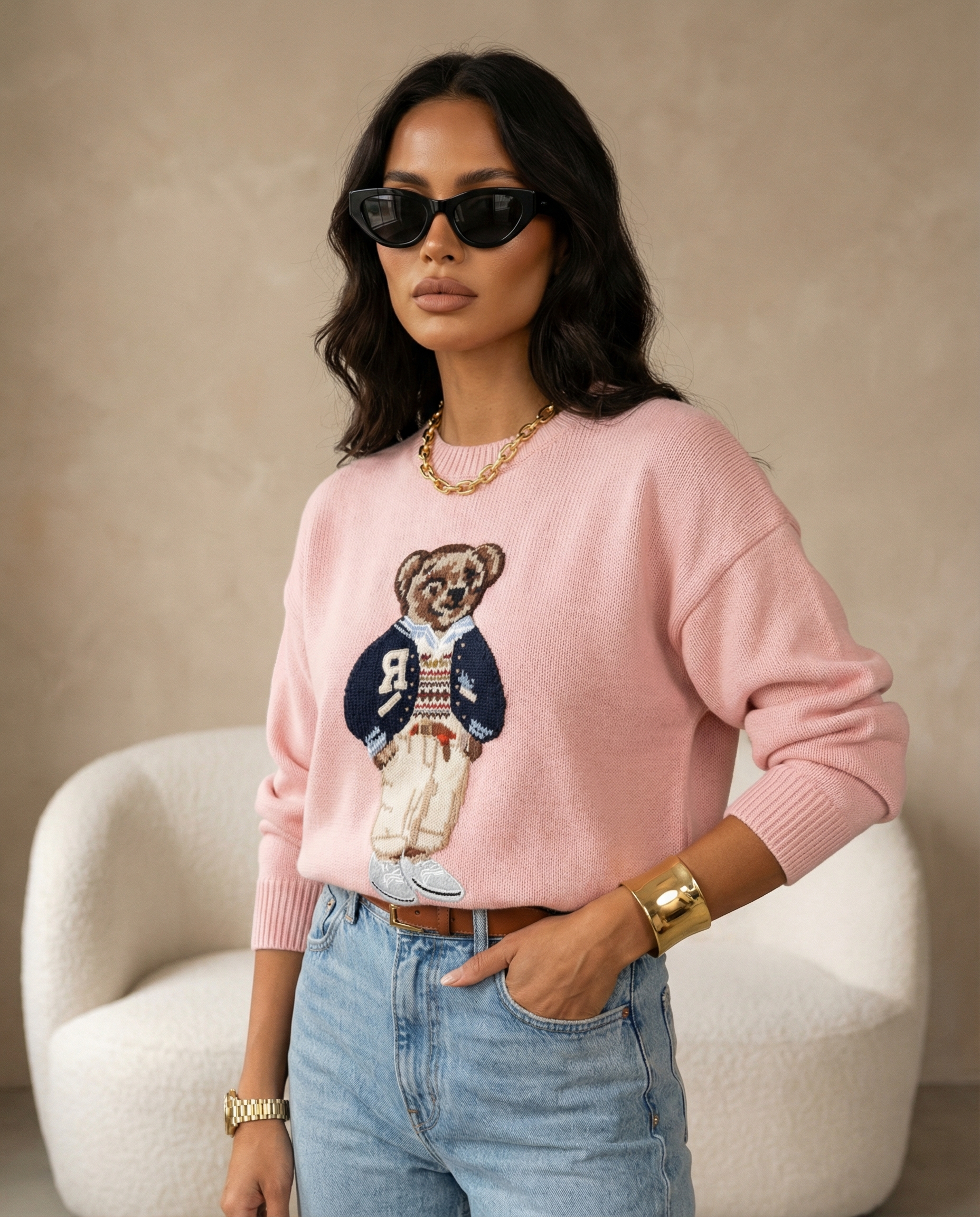 Swetry BEARLY to propozycja stworzona z myślą o hurtownikach poszukujących modnych i uniwersalnych modeli. Beżowy kolor oraz starannie wykonany nadruk misia sprawiają, że ten sweter świetnie wpisuje się w codzienne stylizacje oraz casualowy dress code. Wysokiej jakości materiał zapewnia komfort noszenia oraz trwałość przez wiele sezonów. Doskonały wybór do sklepu, który chce wyróżnić się oryginalnym i przyciągającym wzrok asortymentem. Sweter ten świetnie sprawdzi się zarówno do jeansów, jak i spódnic, a jego uniwersalny krój pozwala dopasować się do różnych sylwetek. Idealny na jesienne i zimowe kolekcje!