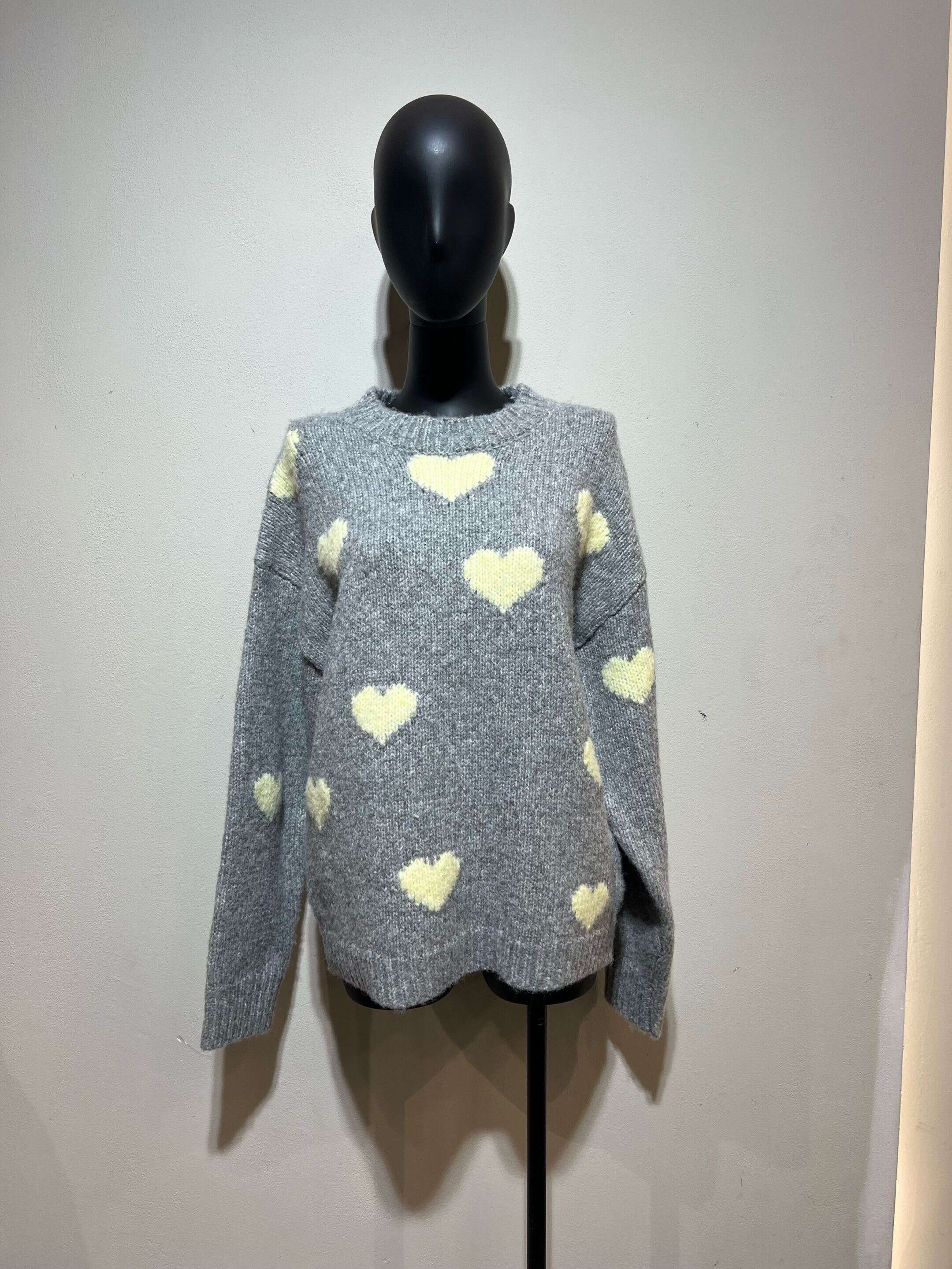 Luźny fason, miękki materiał i modne szarości – idealny wybór na chłodne dni. Subtelne detale, takie jak pastelowe serca, dodają swetrom unikalnego charakteru.