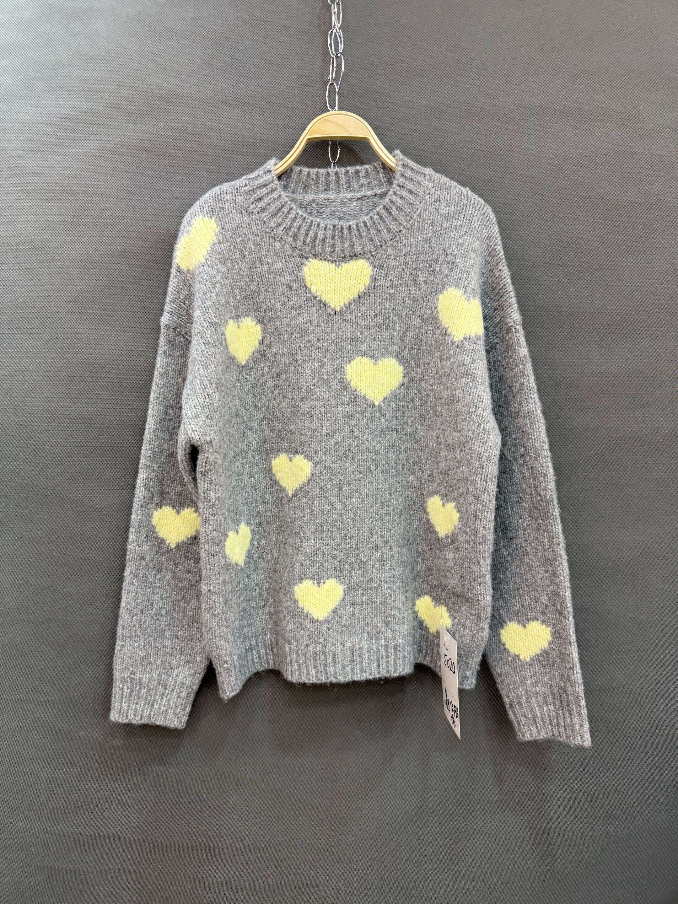 Oferujemy stylowe swetry w najmodniejszym odcieniu szarości, dostępne w dwóch wariantach: klasyczny, jednolity model oraz wersja z żółtymi sercami, która przyciąga wzrok oryginalnym wykończeniem. Swetry wykonane są z wysokiej jakości, miękkiej dzianiny zapewniającej komfort noszenia oraz wygodę w każdej sytuacji. Luźny, ponadczasowy krój sprawdzi się świetnie zarówno w codziennych, jak i bardziej casualowych stylizacjach. To doskonała propozycja na jesień i zimę — wyjątkowa miękkość i ciepło, które doceni każda klientka. Idealne do sprzedaży hurtowej: modny design, uniwersalne rozmiary oraz pewność satysfakcji.