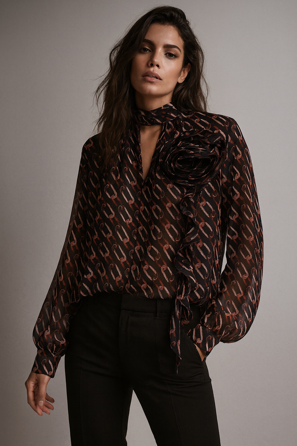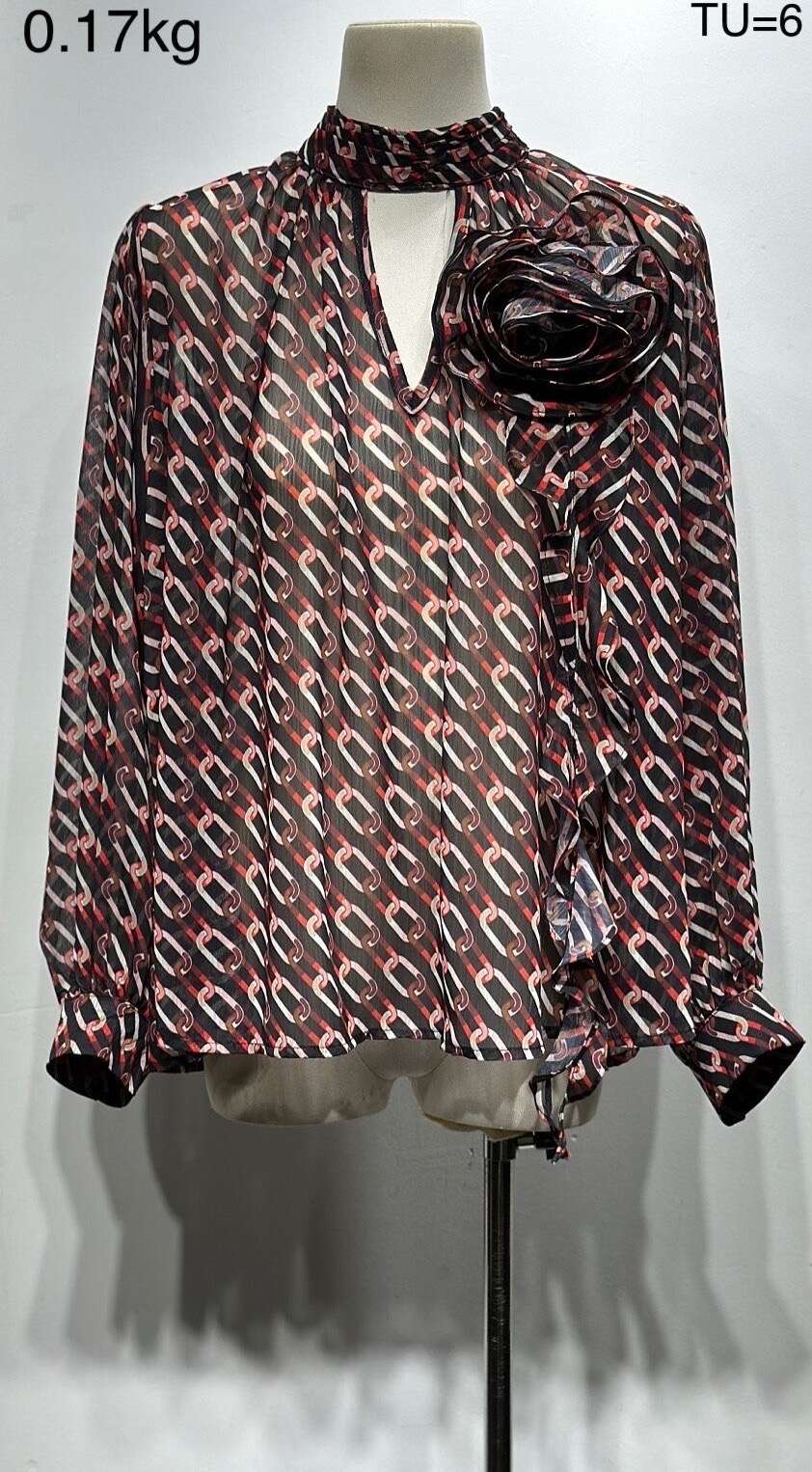 Oferujemy elegancką koszulę, która zachwyca niepowtarzalnym wzorem oraz dekoracyjną rozetą przy dekolcie – detale te sprawiają, że każda stylizacja nabiera wyjątkowego wyrazu. Dostępna w trzech modnych kolorach: żółtym, różowym i klasycznej czerni. Wysokiej jakości tkanina zapewnia komfort noszenia przez cały dzień, a luźny krój gwarantuje wygodę zarówno w pracy, jak i podczas wyjątkowych okazji. Uniwersalna propozycja do sprzedaży hurtowej – doskonała do biura, na spotkania biznesowe i eleganckie wyjścia. Sprawdź pełną rozmiarówkę i zamów już dziś!