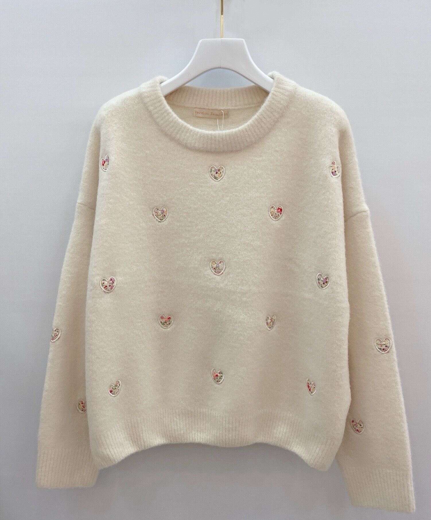 Przytulny sweter o luźnym kroju z uroczymi haftowanymi serduszkami – idealny na każdą porę roku!
