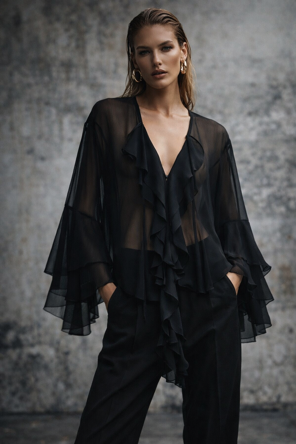 Bluzka VIVIDEN to propozycja dla kobiet ceniących połączenie ponadczasowej elegancji z nutą nowoczesności. Model dostępny w modnych kolorach: żółtym, ecru oraz czarnym, oferuje szerokie możliwości stylizacyjne. Delikatny, lekki materiał zapewnia wygodę noszenia nawet podczas całego dnia pracy czy wyjątkowych spotkań. Wyraziste falbany oraz luźny krój sprawią, że Twoi klienci wyróżnią się subtelną kobiecością. Idealna zarówno do biura, jak i na wieczorne wyjście – bluzka VIVIDEN uzupełni każdą kolekcję hurtową o bestsellerowy model.