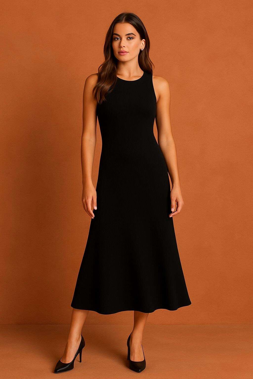 Klasyczny fason midi, wygodny prążkowany materiał, minimalistyczny styl na każdą okazję.