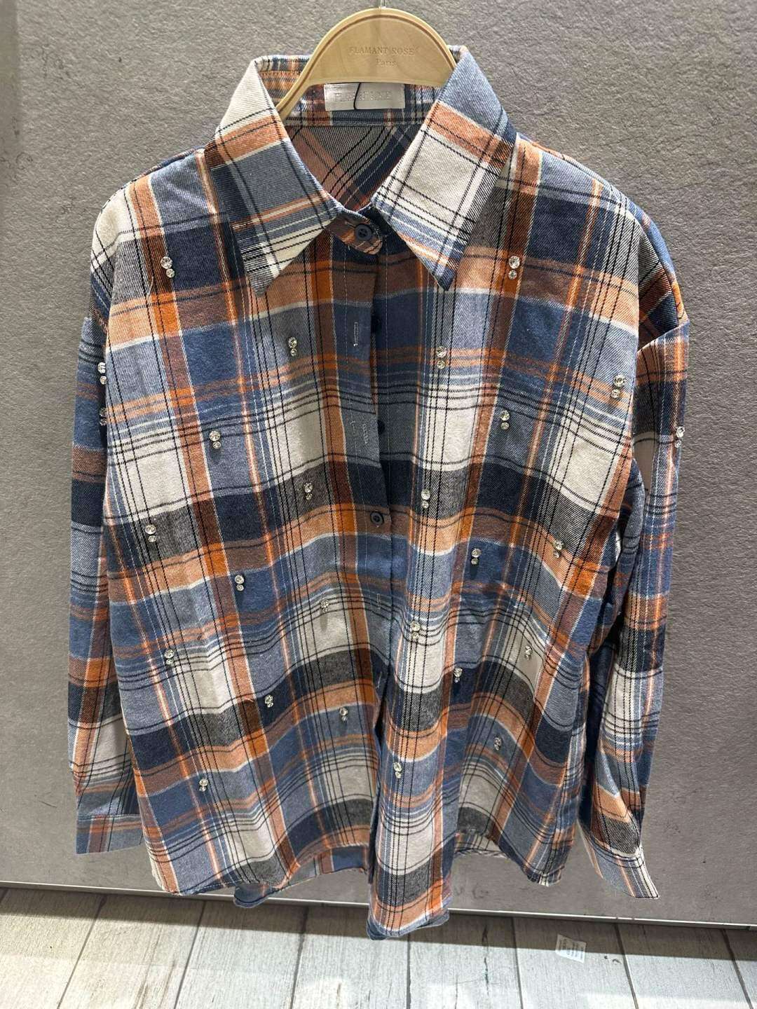 Modna koszula w kratę, wyjątkowo miękka i wygodna, ozdobiona subtelnymi cyrkoniami dla efektownego looku.