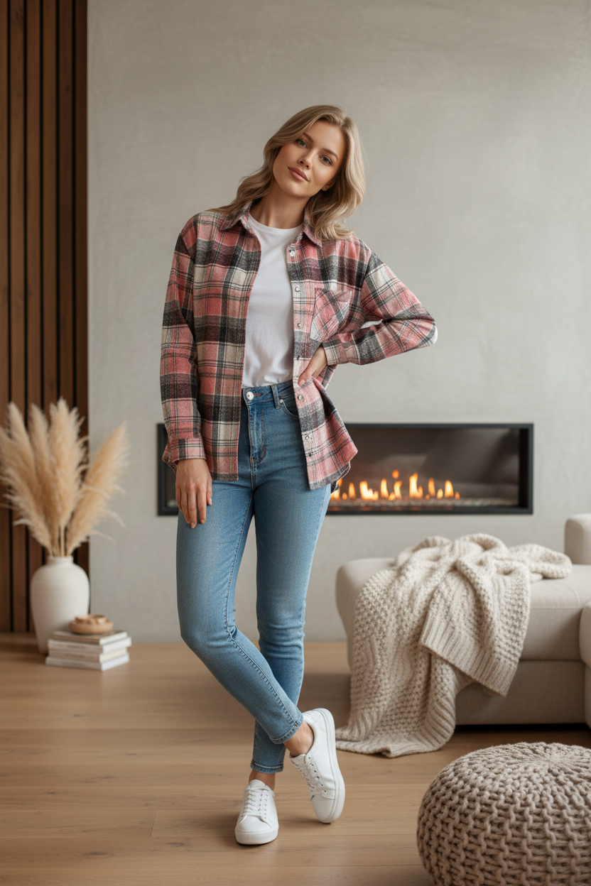 Modna koszula w kratę z luźnym krojem, wygodna i stylowa – idealna na co dzień.