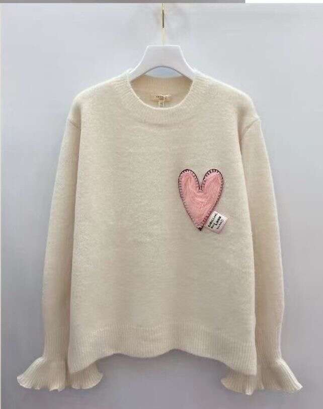 Dziewczęcy sweter z uroczym sercem, miękki w dotyku, wygodny fason z falbanką na rękawach – idealny na co dzień i na prezent!
