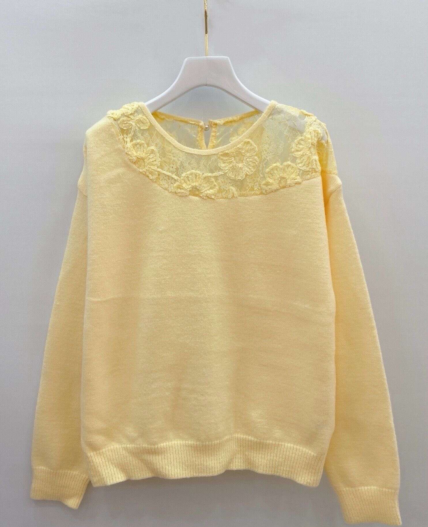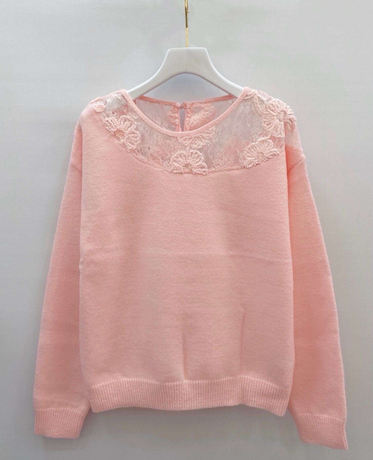 Delikatny sweter z koronkowym panelem przy dekolcie, zapewniający komfort i subtelną elegancję na co dzień.