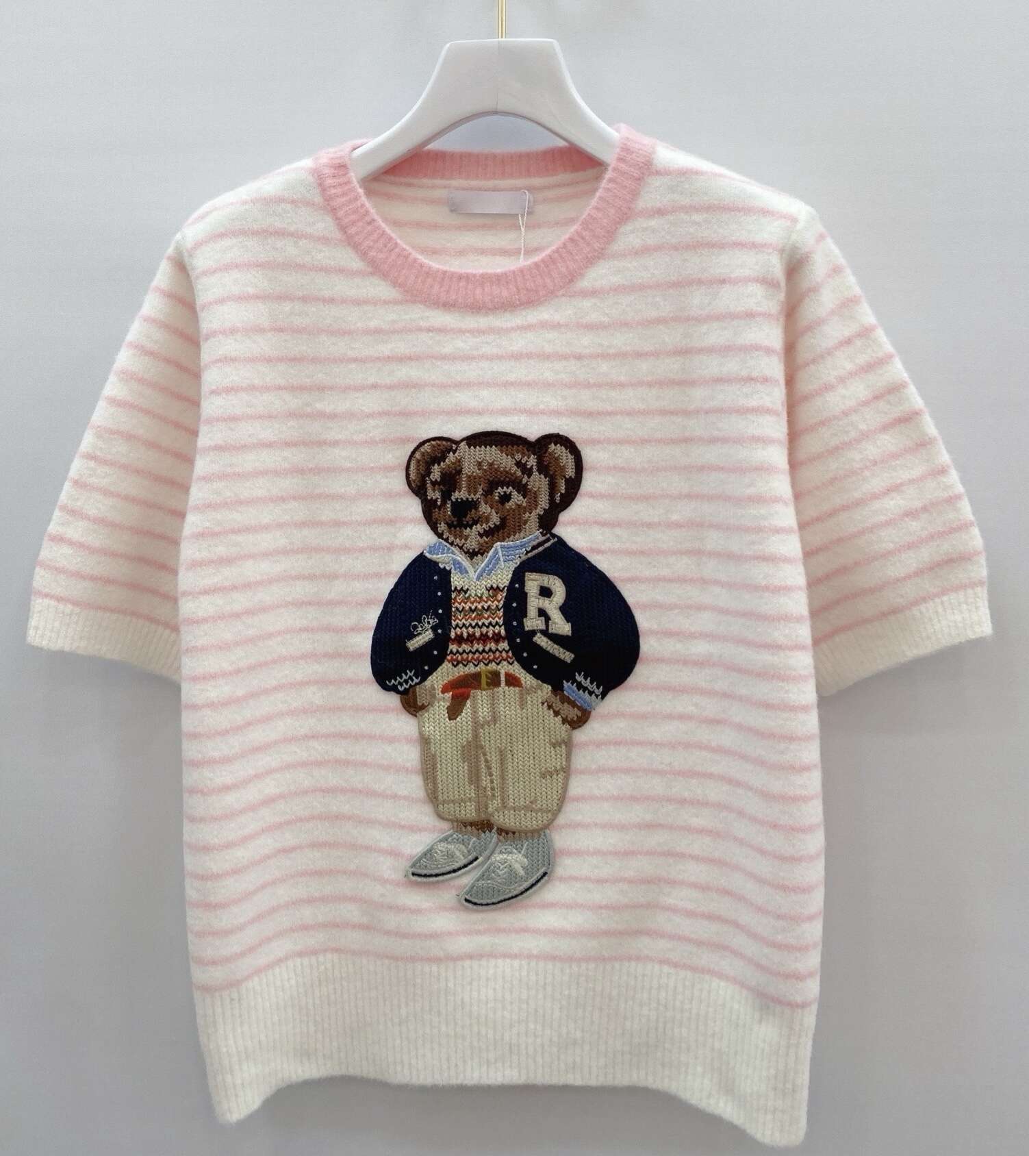 Sweter BEARLICIOUS to propozycja, która zachwyci każdą klientkę szukającą modnych, a zarazem wygodnych rozwiązań. Krótkie rękawy i swobodny krój gwarantują komfort noszenia przez cały dzień, a przyjemny w dotyku materiał zapewnia ciepło i miękkość. Charakterystycznym detalem jest efektowny haft misia, który nadaje swetrowi niepowtarzalny, młodzieżowy charakter. Produkt dostępny w czterech pastelowych kolorach: żółtym, różowym, beżowym i błękitnym, co pozwoli dopasować go do aktualnych trendów i preferencji klientów Twojej hurtowni. Świetnie sprawdzi się w codziennych stylizacjach, do jeansów, spódnic czy casualowych spodni. Oferowany w szerokiej gamie rozmiarów – idealny wybór na nadchodzący sezon!
