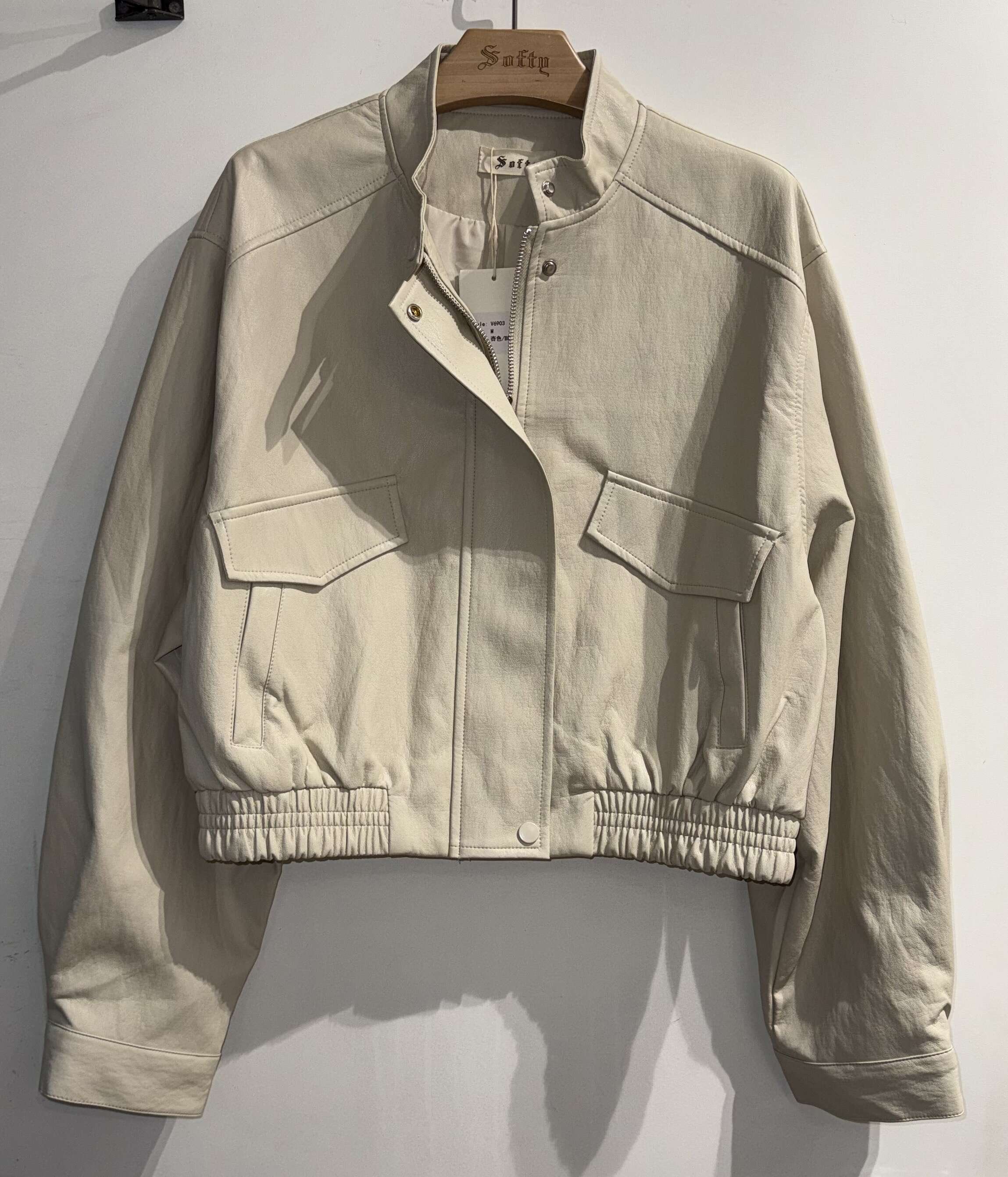 Modna, krótka kurtka o lekko oversize’owym kroju z elastycznym dołem, dwoma dużymi kieszeniami i stójką – idealna na wiosnę i lato.