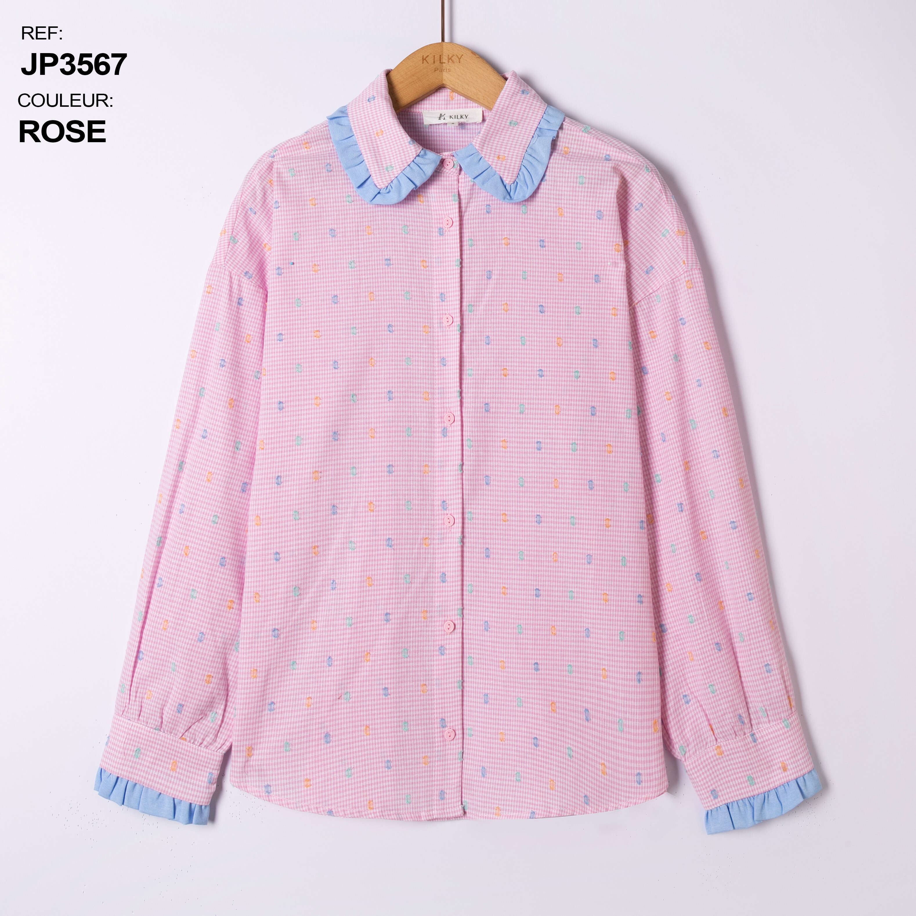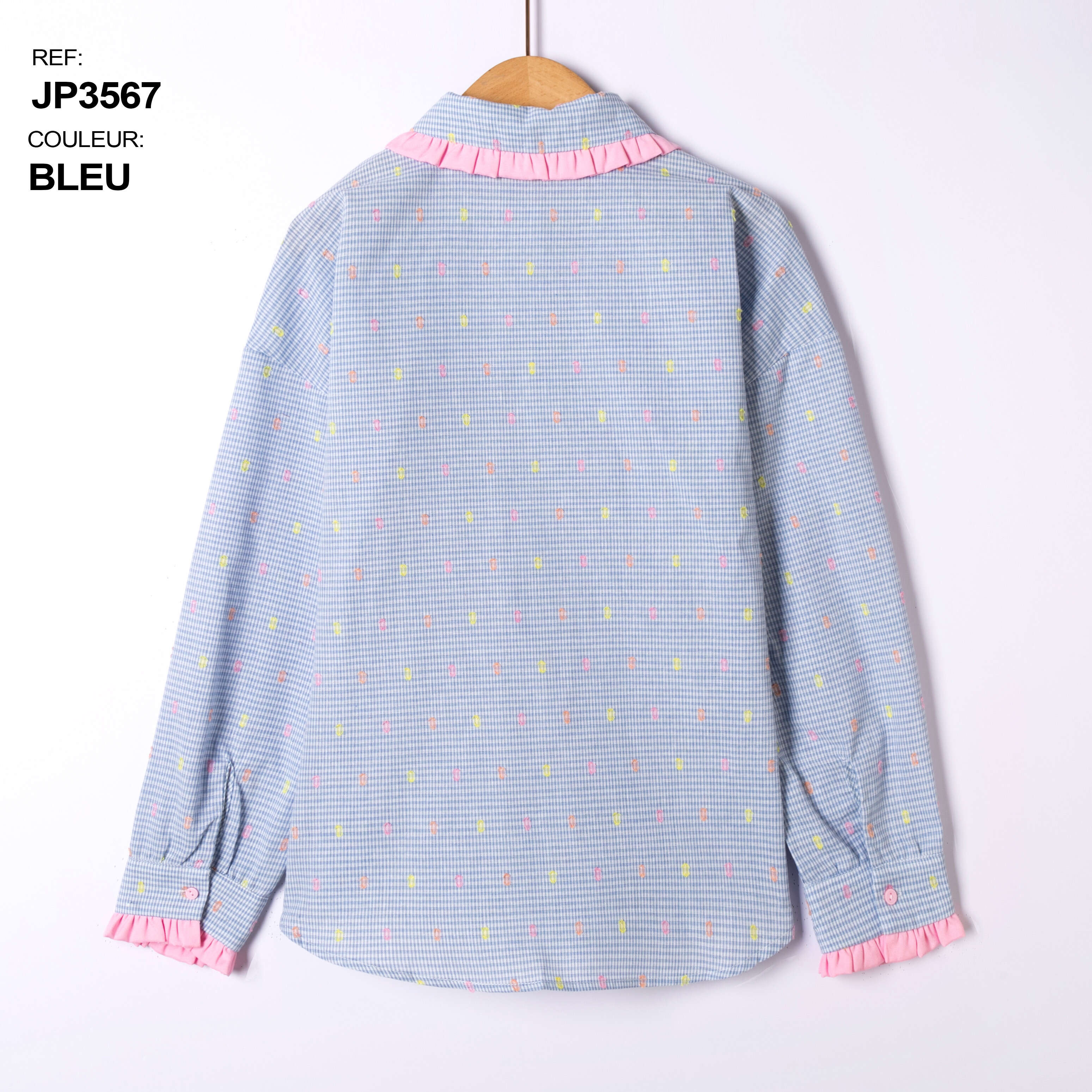 Koszule PASTELLO to propozycja dla wymagających klientek, które cenią nie tylko wygodę, ale również wyjątkowy design. Model dostępny w modnych kolorach: niebieskim i różowym, zachwyca subtelnym wzorem z pastelowymi akcentami oraz falbankami przy kołnierzyku i mankietach. Lekko oversize’owy krój zapewnia swobodę ruchów i komfort przez cały dzień. Wysokiej jakości, oddychający materiał gwarantuje trwałość oraz łatwość utrzymania w czystości. Doskonale sprawdzi się zarówno w casualowych stylizacjach, jak i na specjalne okazje, dodając każdej stylizacji delikatnego uroku. Idealne do asortymentu każdego sklepu z modą damską.