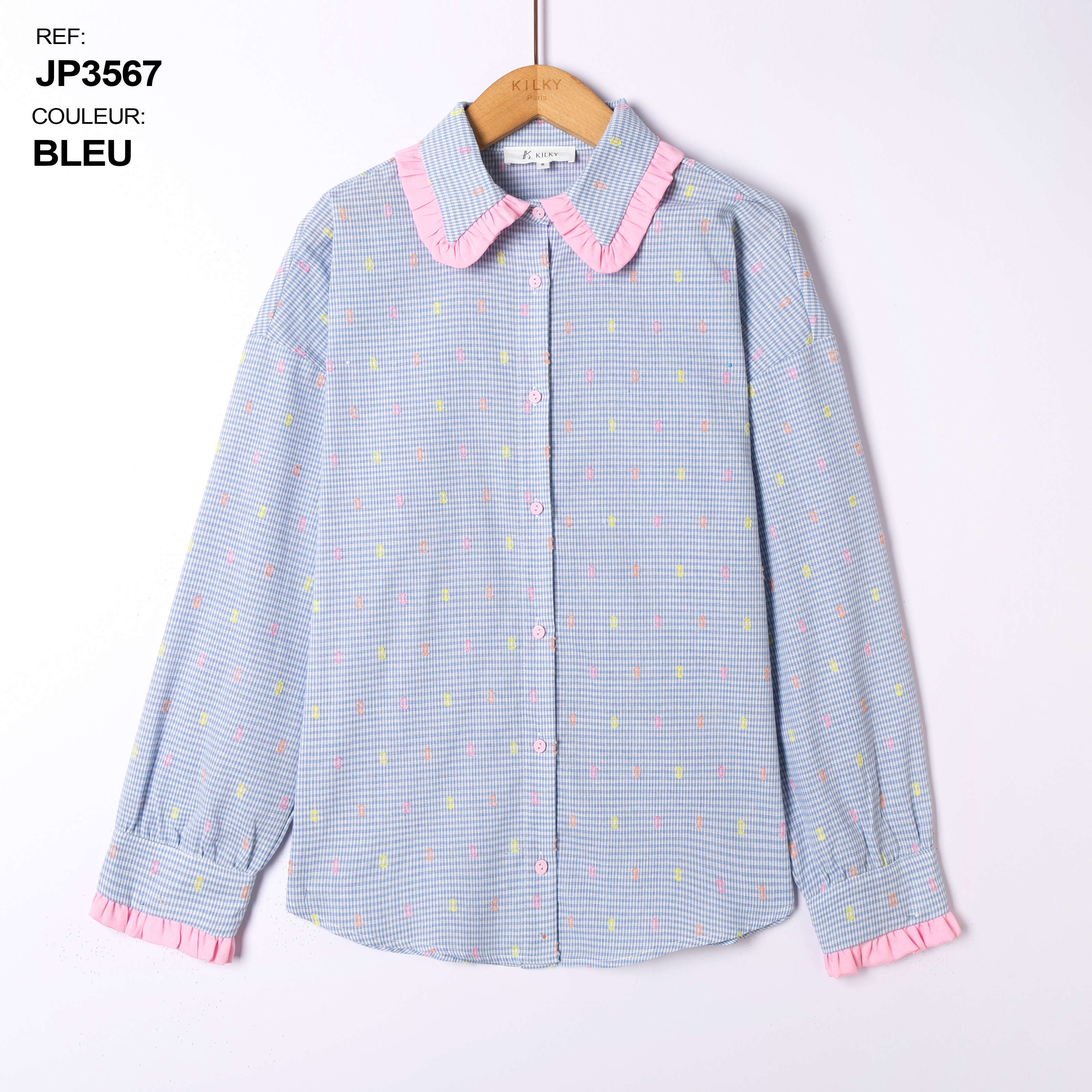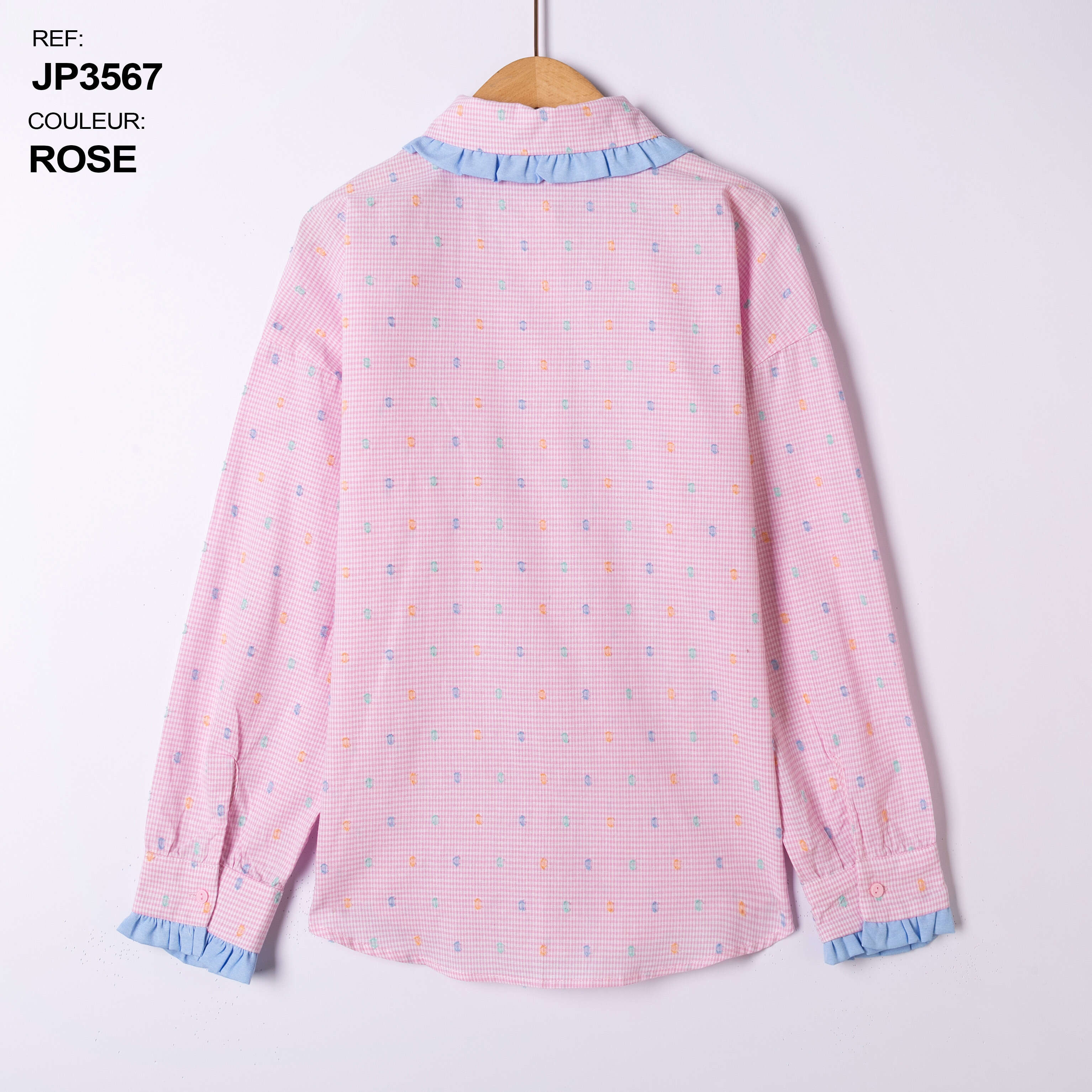 Koszule PASTELLO to propozycja dla wymagających klientek, które cenią nie tylko wygodę, ale również wyjątkowy design. Model dostępny w modnych kolorach: niebieskim i różowym, zachwyca subtelnym wzorem z pastelowymi akcentami oraz falbankami przy kołnierzyku i mankietach. Lekko oversize’owy krój zapewnia swobodę ruchów i komfort przez cały dzień. Wysokiej jakości, oddychający materiał gwarantuje trwałość oraz łatwość utrzymania w czystości. Doskonale sprawdzi się zarówno w casualowych stylizacjach, jak i na specjalne okazje, dodając każdej stylizacji delikatnego uroku. Idealne do asortymentu każdego sklepu z modą damską.