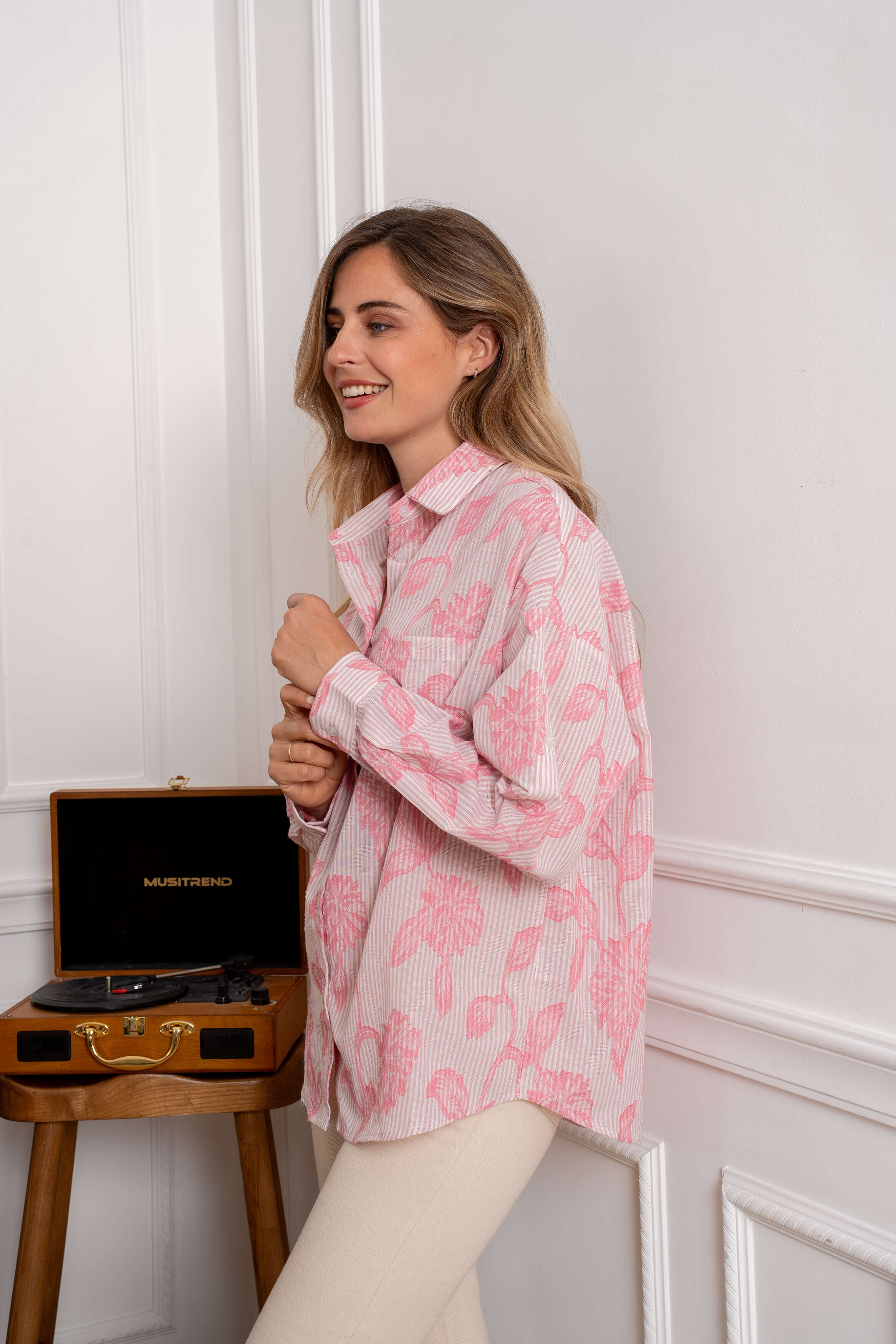 Koszula CIEL to propozycja stworzona z myślą o wymagających klientkach, które cenią sobie zarówno styl, jak i wygodę. Dostępna w świeżych, kobiecych kolorach – różowym i niebieskim – świetnie wpisuje się w najnowsze trendy mody damskiej. Wykonana z wysokiej jakości, oddychającego materiału, gwarantuje komfort przez cały dzień, a luźny fason zapewnia swobodę ruchów. Delikatny, kwiatowy wzór dodaje lekkości i subtelności, dzięki czemu koszula doskonale sprawdzi się zarówno do stylizacji casualowych, jak i biurowych czy na spotkania towarzyskie. Różne rozmiary ułatwiają dopasowanie do każdej sylwetki. To must-have w asortymencie każdej hurtowni!