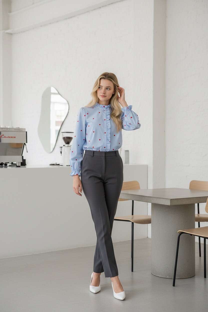 Koszula CHERRY to wyjątkowa propozycja, która doskonale wpisuje się w najnowsze trendy mody damskiej. Subtelny błękit w połączeniu z uroczymi, czerwonymi haftami w kształcie serduszek to gwarancja wyróżnienia każdej stylizacji. Elegancka falbanka przy dekolcie dodaje kobiecości oraz lekkości, a luźny, wygodny krój zapewnia komfort noszenia przez cały dzień. Dostępna w rozmiarach idealnych na każdą sylwetkę, wykonana z wysokogatunkowego materiału, który jest przyjemny w dotyku i trwały. Doskonale sprawdzi się zarówno w codziennych, jak i eleganckich stylizacjach – na spotkania biznesowe, romantyczne kolacje czy jako element casualowego looku. Zainwestuj w modny i wszechstronny asortyment – postaw na koszulę, która przyciąga wzrok i gwarantuje satysfakcję Twoim klientkom.