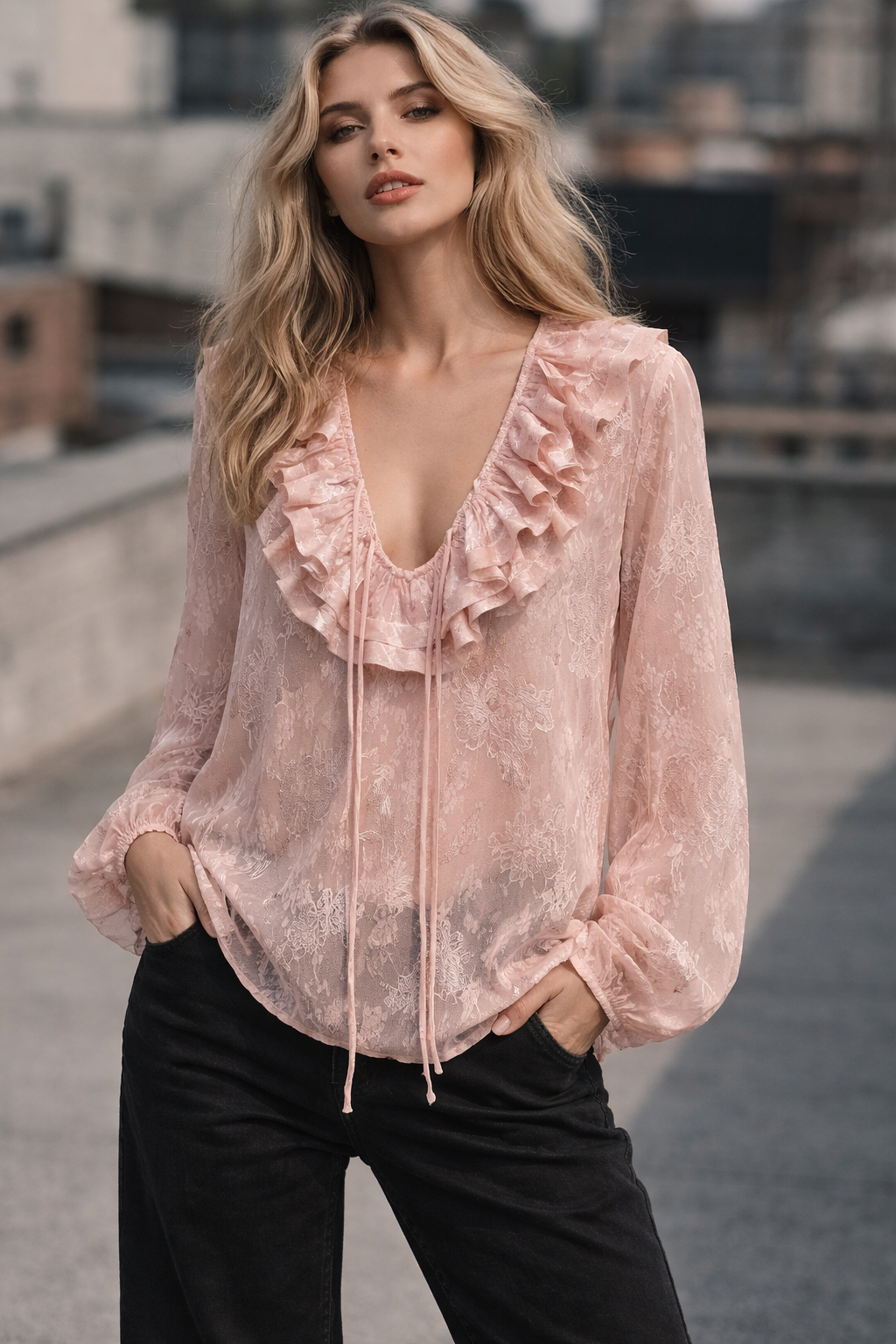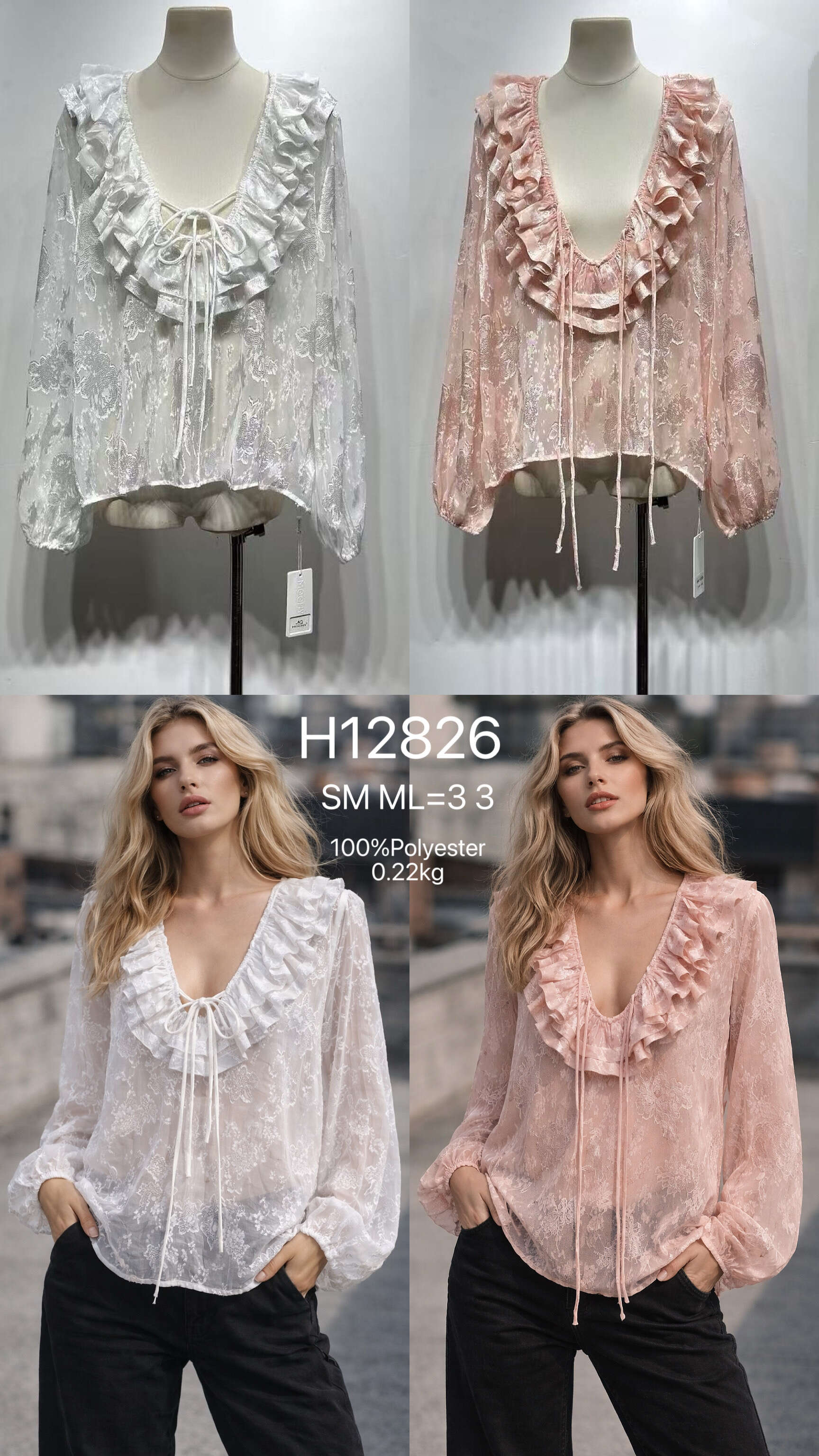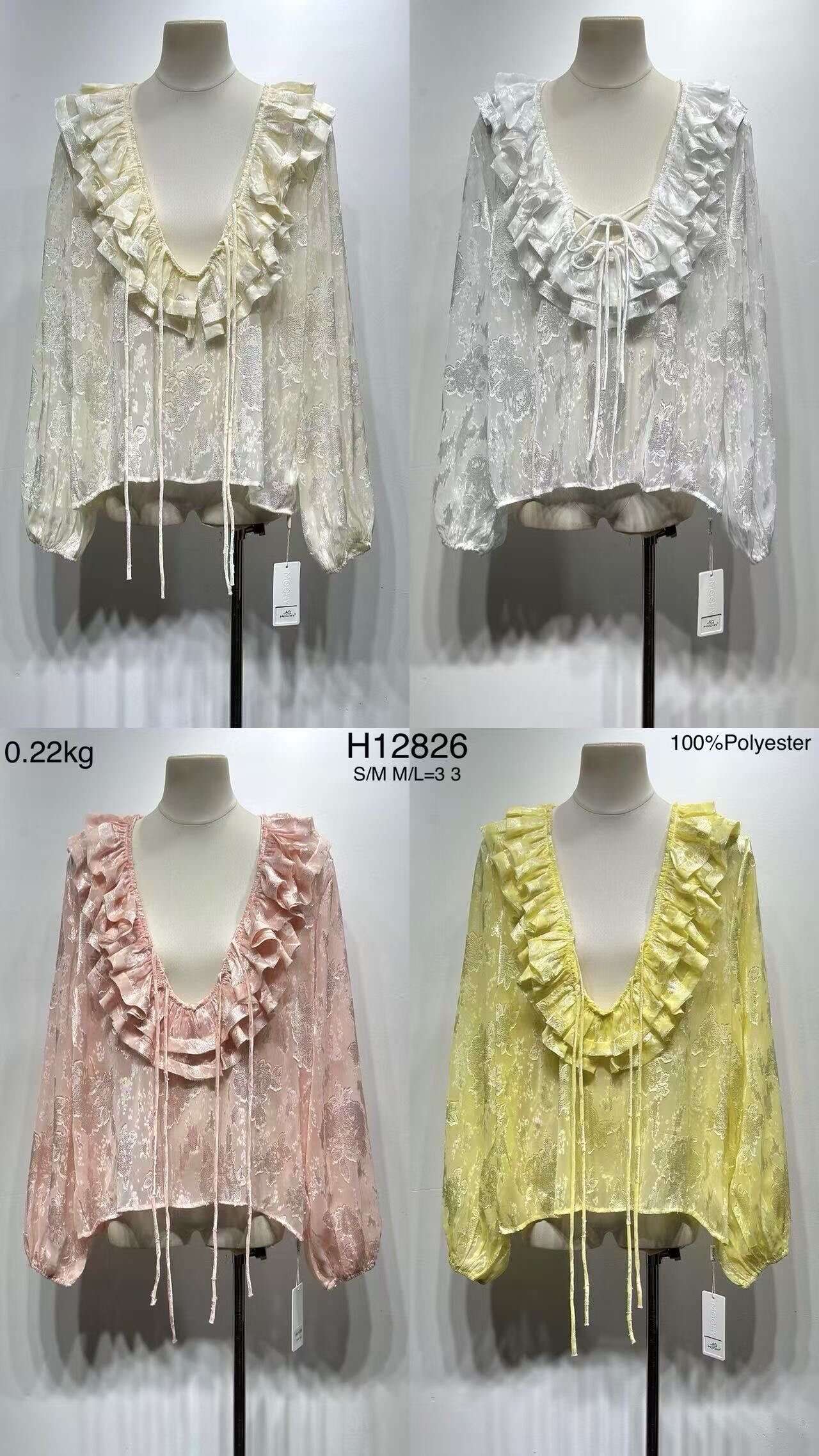 Bluzki ROMANCE to kwintesencja kobiecego stylu i nowoczesnej elegancji. Model dostępny w trzech modnych kolorach – żółtym, różowym i białym – doskonale sprawdzi się jako propozycja do Twojego sklepu. Lekka, transparentna tkanina zapewnia komfort noszenia, a szerokie rękawy oraz romantyczna falbana przy dekolcie dodają bluzce wyjątkowego uroku. Dostępność rozmiarów S/M oraz M/L pozwala dopasować ofertę do różnych sylwetek. To idealny wybór zarówno na codzienne stylizacje, jak i wieczorne wyjścia. Postaw na jakość, efektowny design i zwiększ sprzedaż dzięki tej uniwersalnej bluzce damskiej!