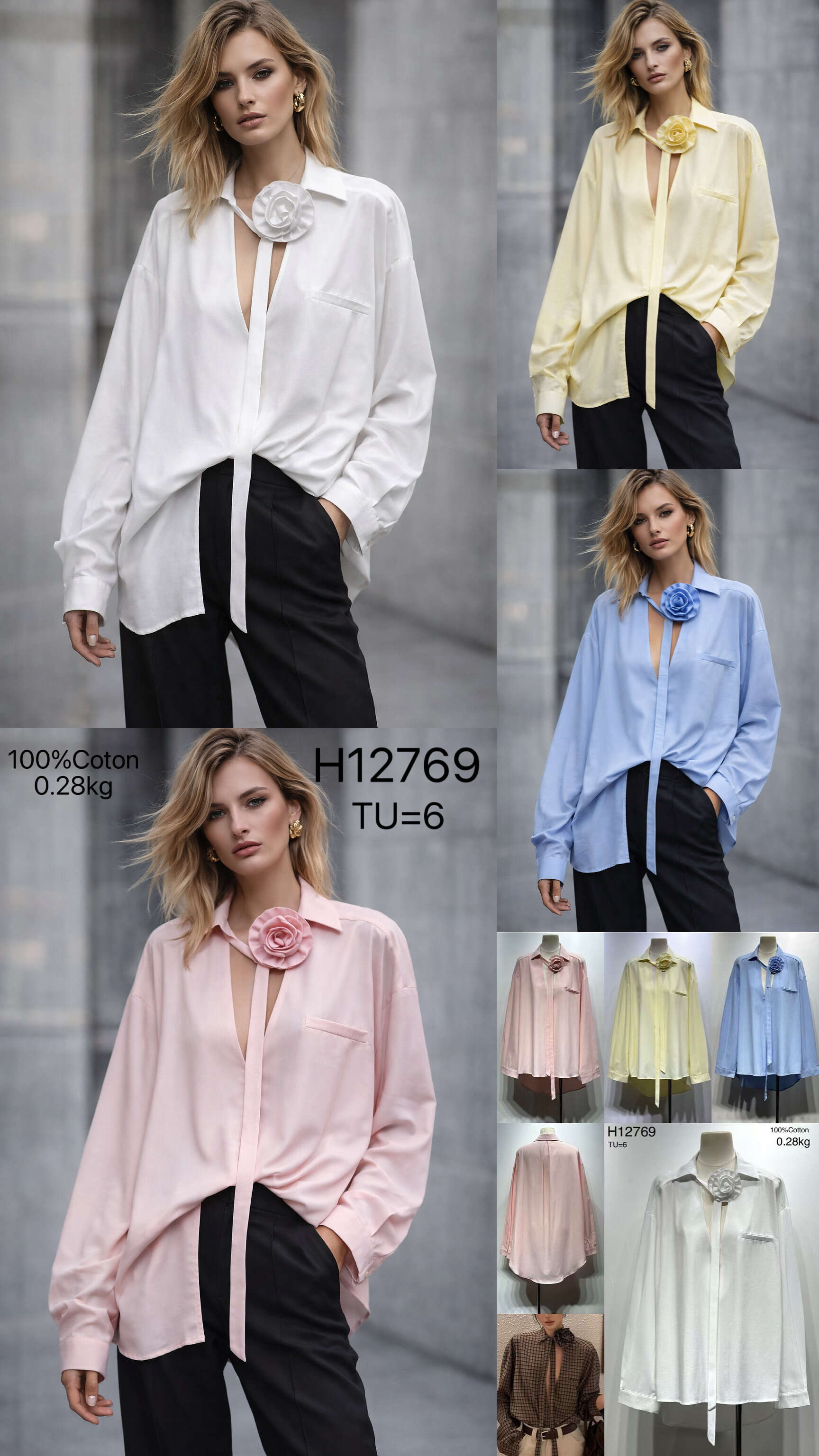 Koszule CASHMIRE to wyjątkowa propozycja dla hurtowni, która ceni sobie modne i uniwersalne rozwiązania. Model dostępny w czterech eleganckich kolorach: żółtym, różowym, niebieskim i białym, pozwala na dopasowanie do każdej kolekcji. Wykonana z wysokogatunkowego materiału koszula o oversize’owym kroju świetnie sprawdzi się zarówno w codziennych, jak i bardziej formalnych stylizacjach. Modny detal w postaci kwiatowej aplikacji przy kołnierzu podkreśla kobiecy charakter produktu. Doskonały wybór na sezon wiosna-lato, jak i do całorocznych kolekcji. Różne warianty kolorystyczne i pełna rozmiarówka gwarantują satysfakcję klientów detalicznych.