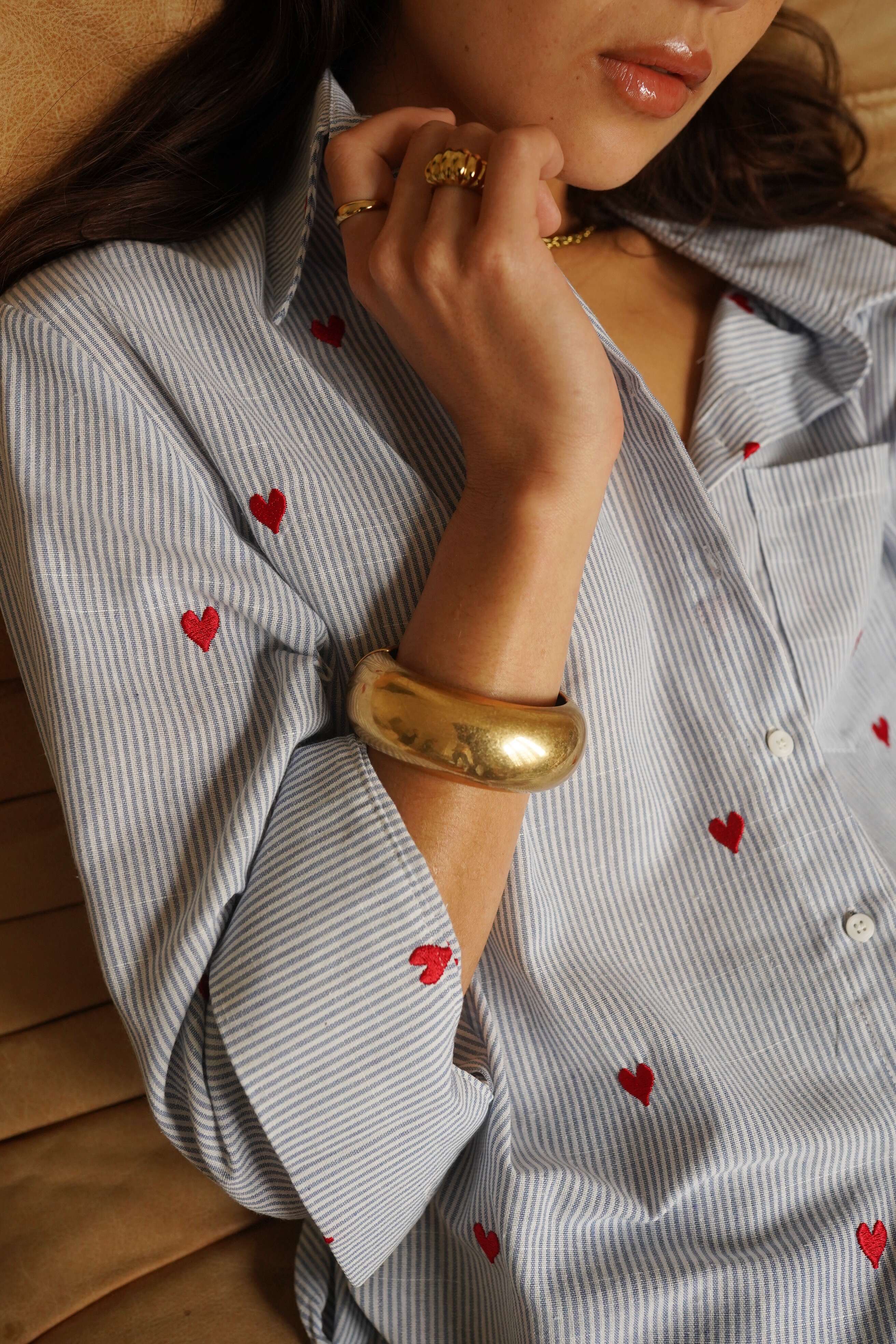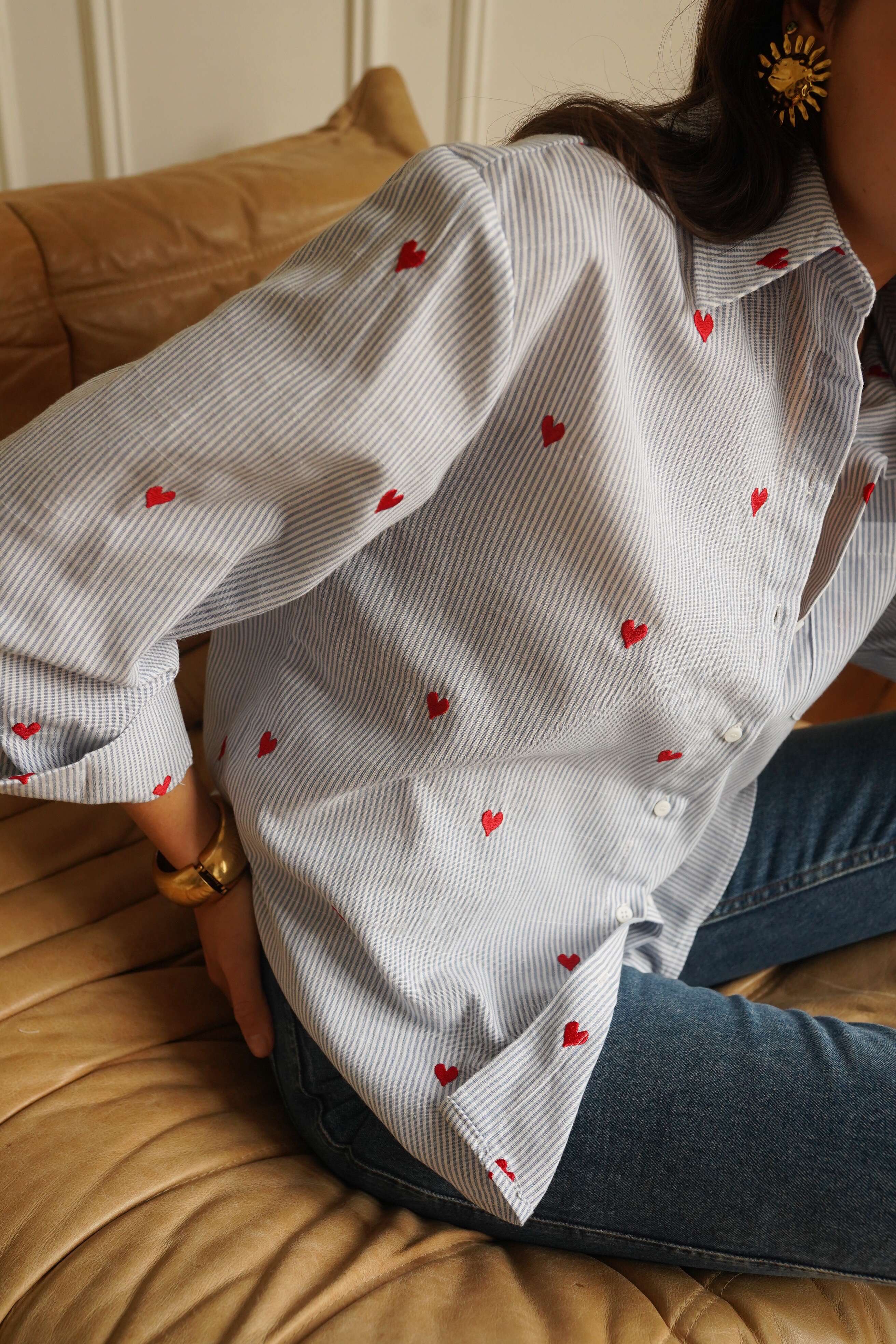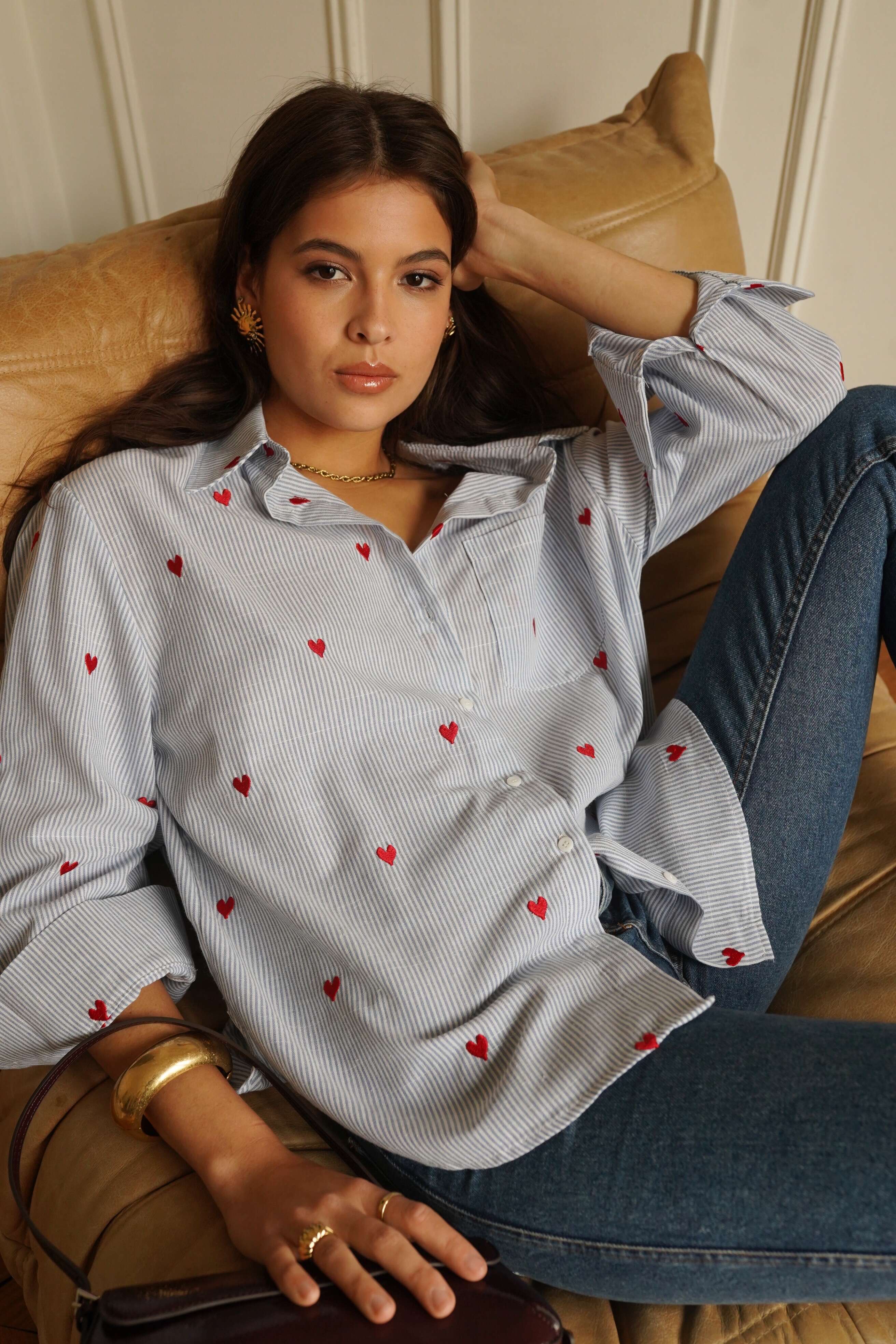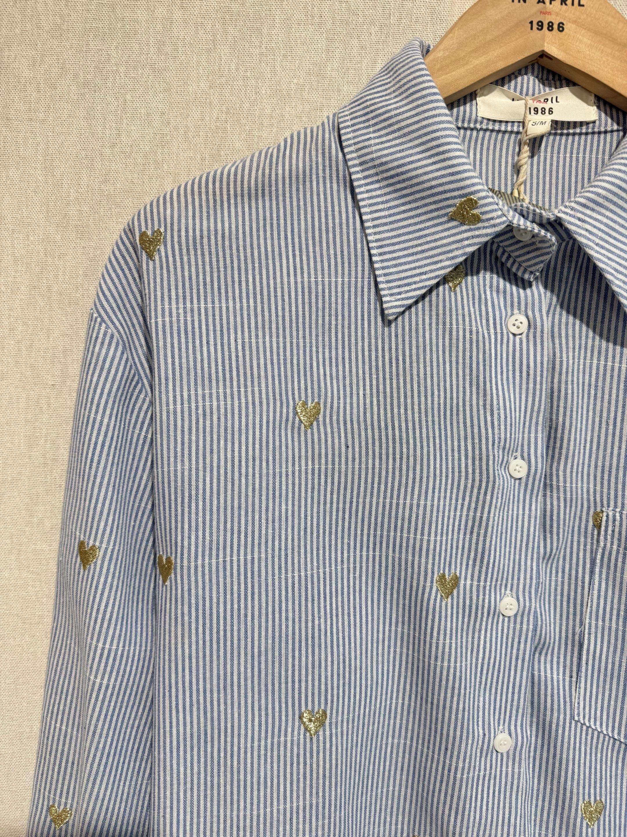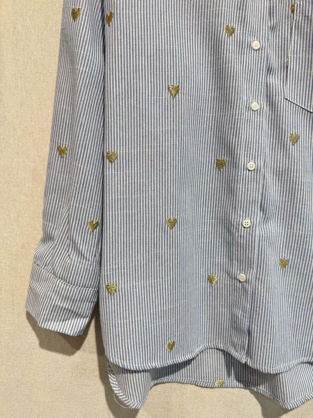 Koszula o klasycznym kroju, wykonana z lekkiego materiału, ozdobiona złotymi detalami – idealna na każdą okazję.