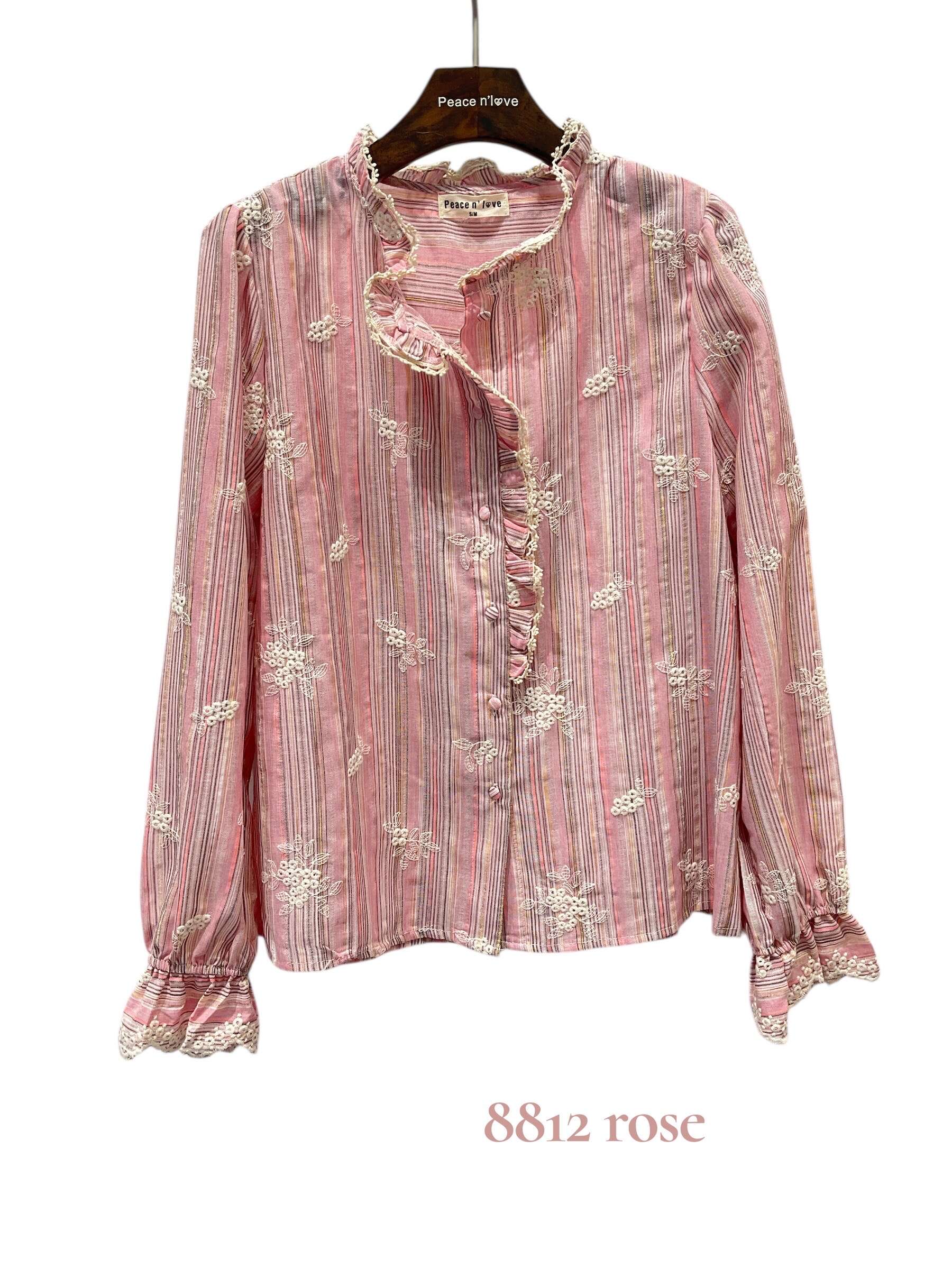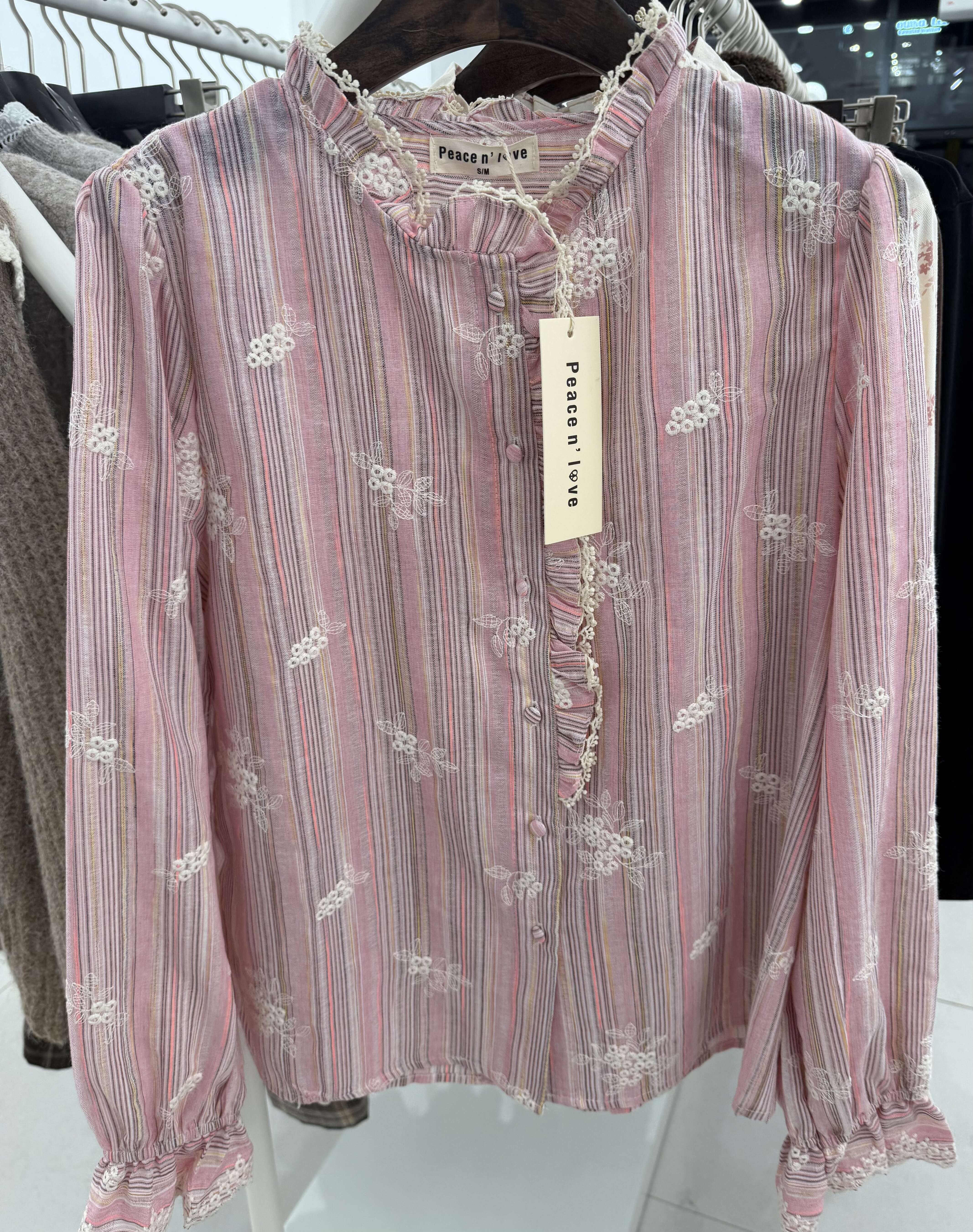 Zwiewna koszula w kolorze różowym z delikatnym wzorem i romantycznymi falbanami. Idealna na codzienne stylizacje i wyjątkowe okazje.