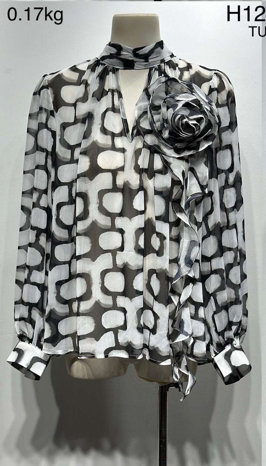 Nowoczesny fason, lekki materiał, efektowna aplikacja w postaci kwiatowej broszki i modne wzory – idealny wybór na każdą okazję.