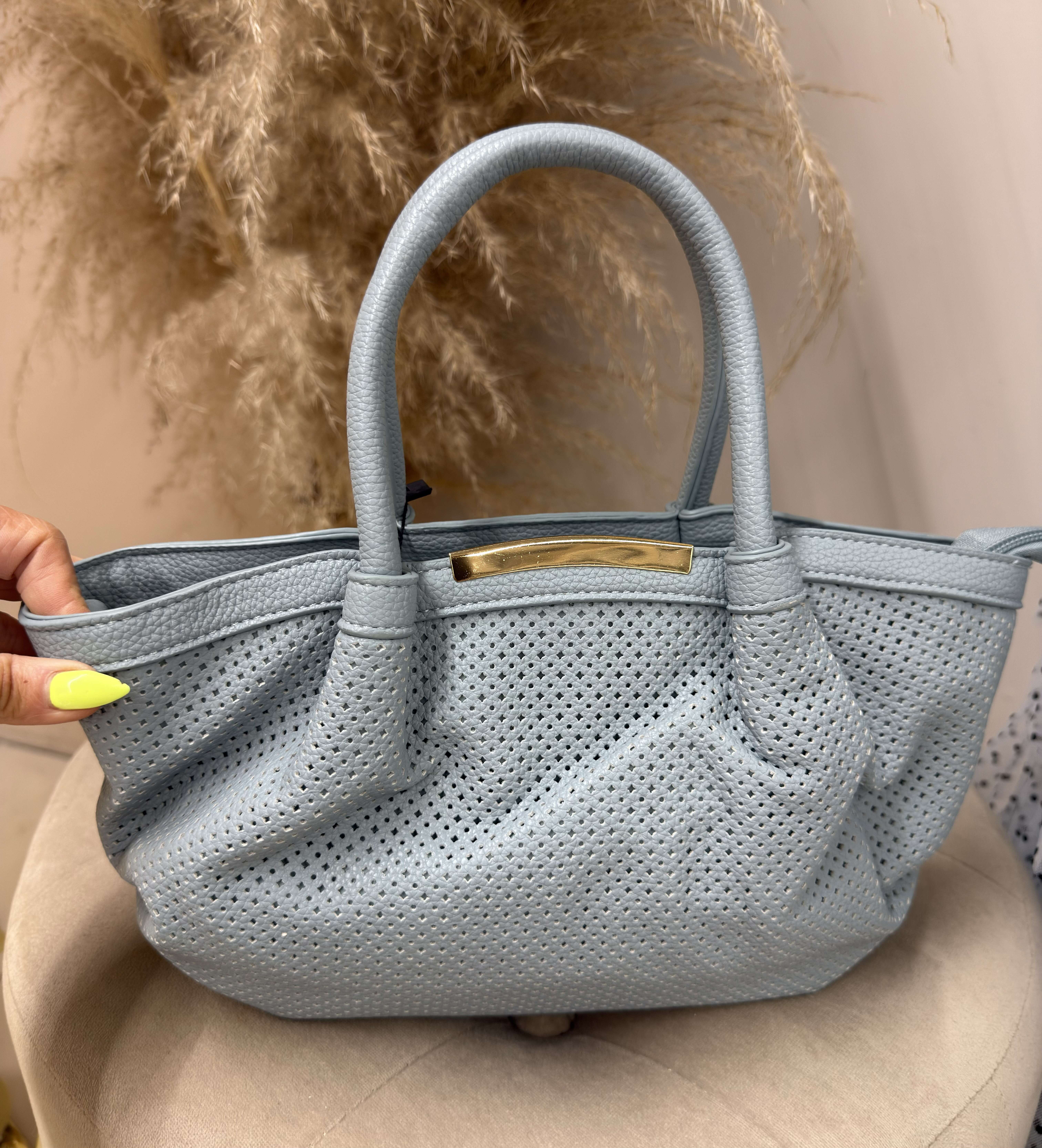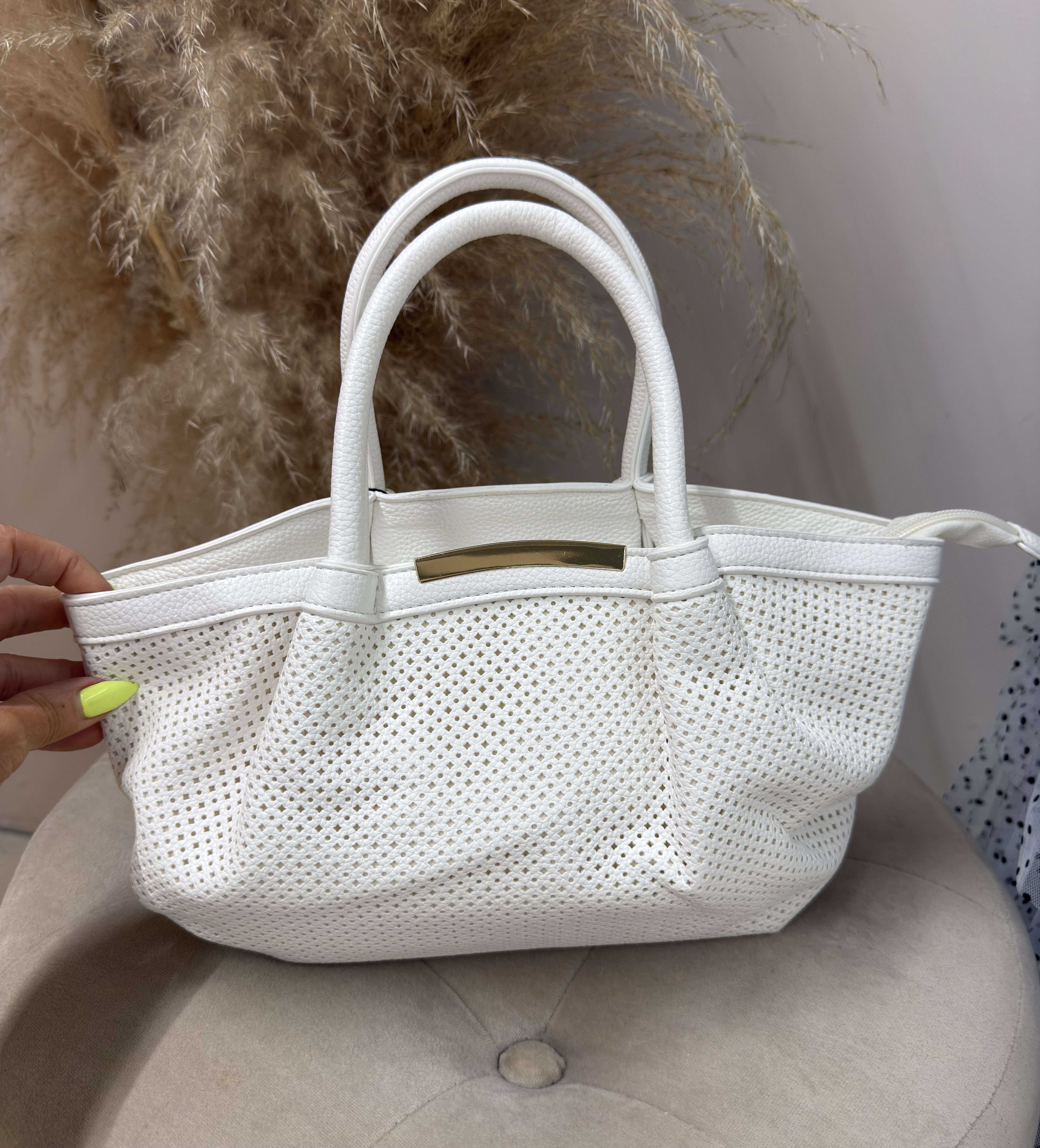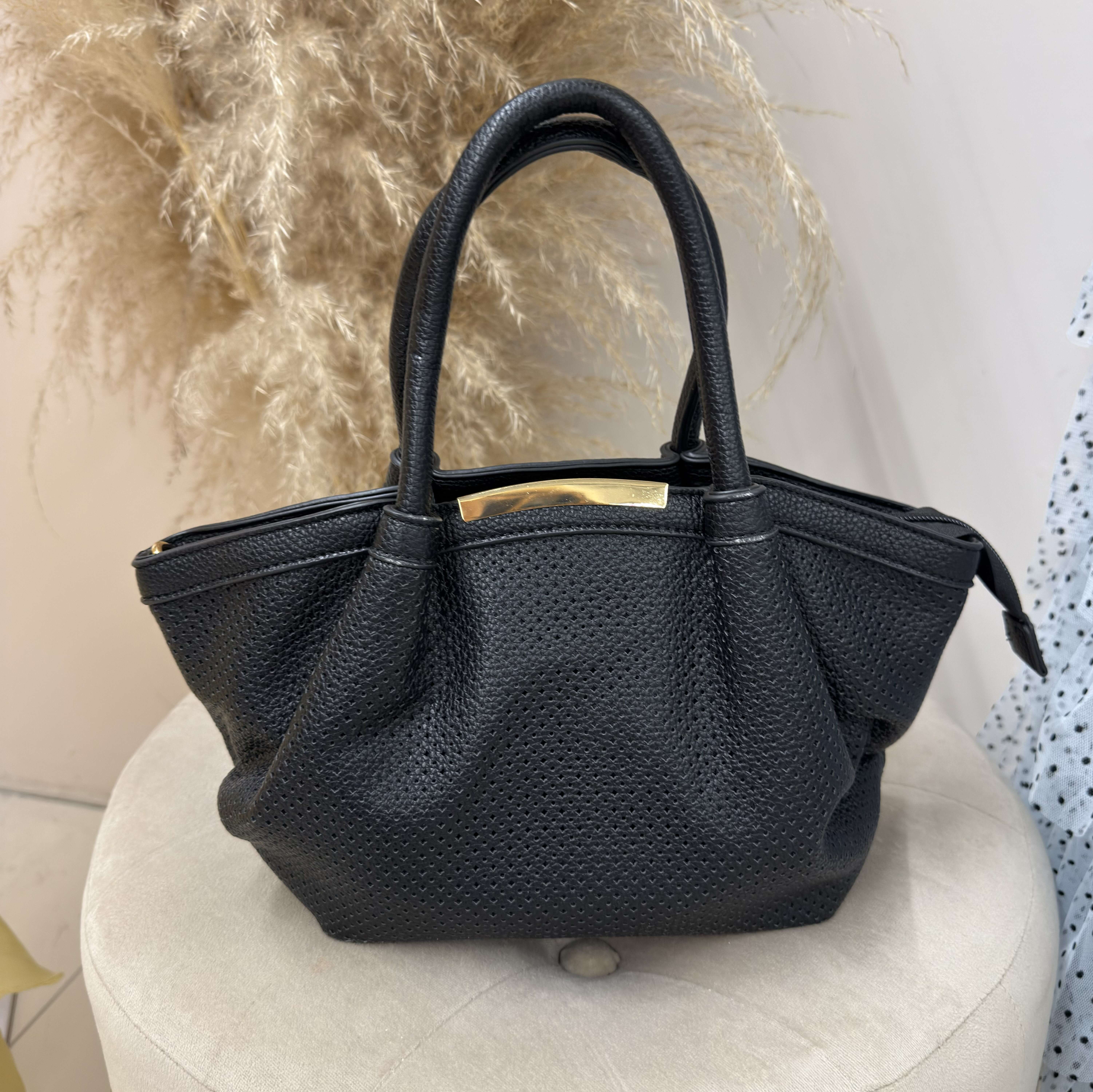 Modna torba z perforowanej ekoskóry, wyróżniająca się nowoczesnym designem i wygodą noszenia każdego dnia.