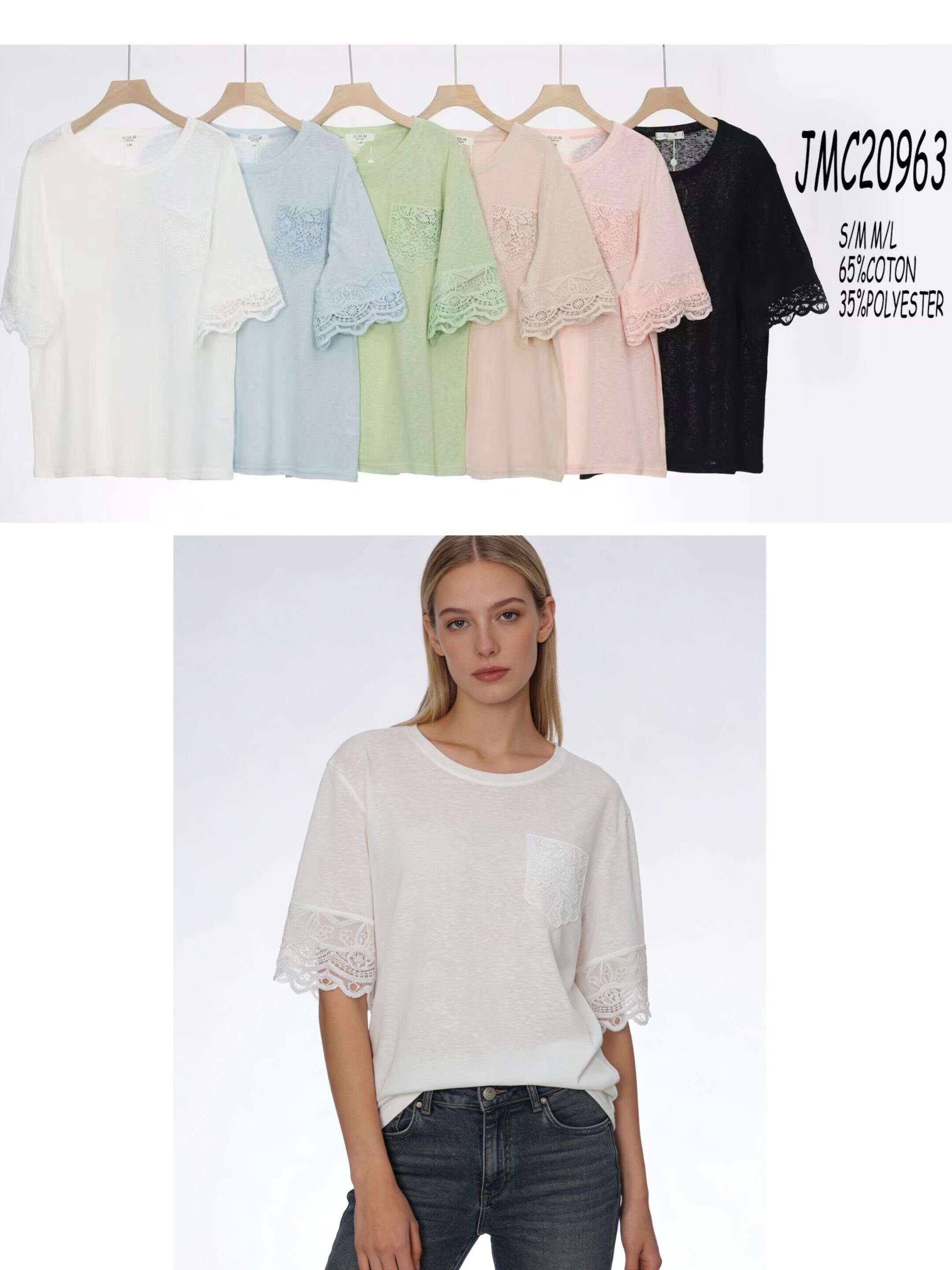 Oferujemy bluzkę HARMONY – model, który z pewnością przyciągnie uwagę Twoich klientek. Dostępna w najmodniejszych kolorach: różowym, miętowym, czarnym, błękitnym, białym i beżowym, w rozmiarach S/M oraz M/L. Bluzka wykonana jest z wysokiej jakości mieszanki bawełny (65%) i poliestru (35%), co zapewnia oddychalność, trwałość i komfort noszenia przez cały dzień. Koronkowe wykończenie rękawów i kieszonki dodaje całości subtelnej elegancji i sprawia, że bluzka idealnie sprawdzi się zarówno w casualowych stylizacjach, jak i podczas bardziej oficjalnych spotkań. Doskonała propozycja do hurtu – uniwersalny fason, modne detale i szeroka gama kolorystyczna gwarantują świetną sprzedaż.