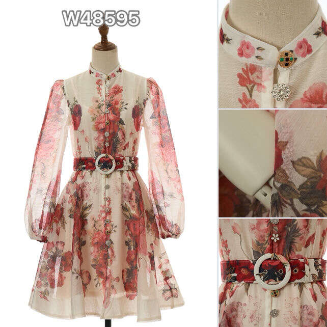 Zwiewna sukienka w kwiaty z transparentnymi rękawami i delikatnym paskiem, zapewnia modny wygląd i wygodę noszenia.