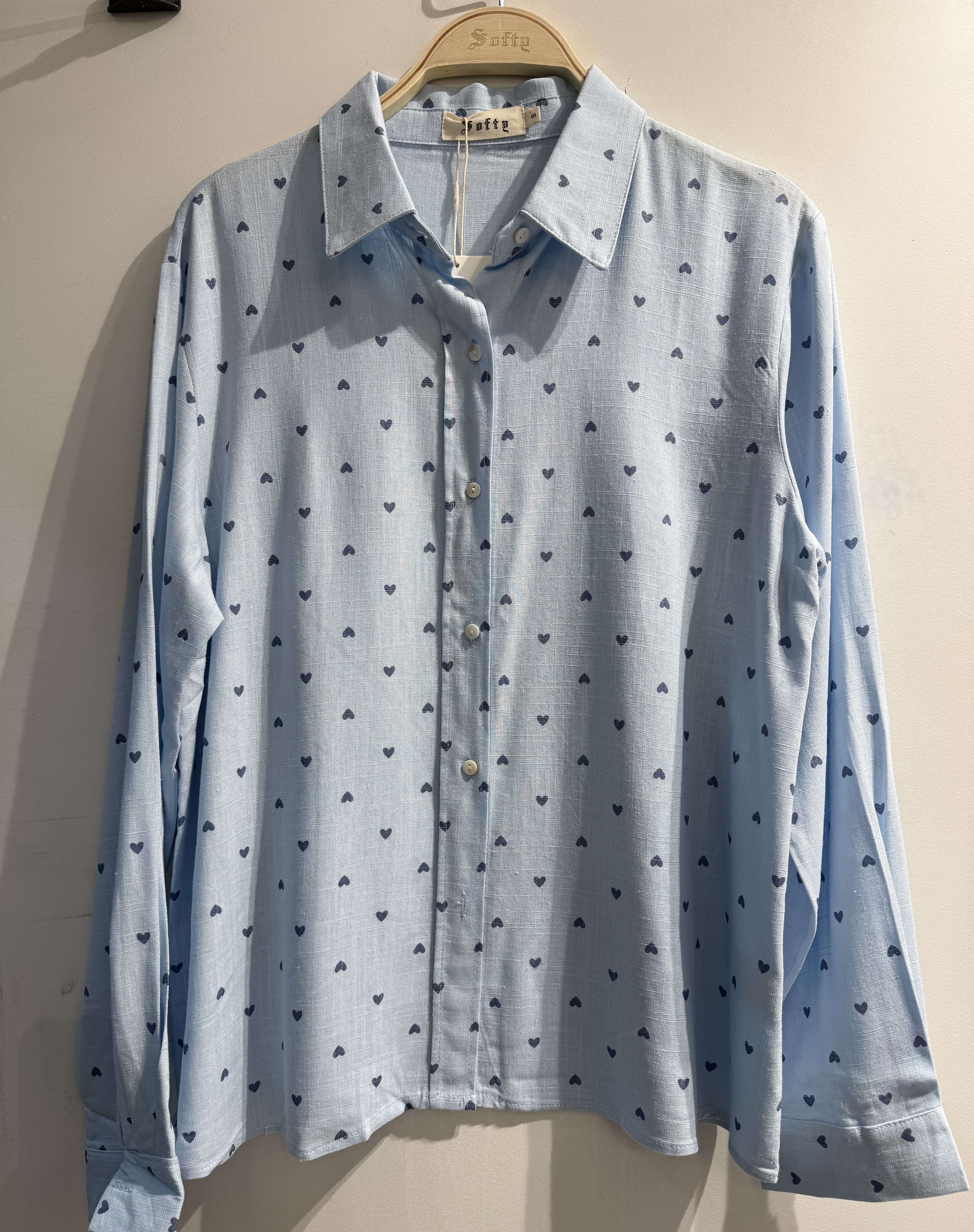 Klasyczna koszula o swobodnym kroju z miękkiego materiału, ozdobiona modnym wzorem w czerwone serca. Idealna na co dzień i wyjątkowe okazje.