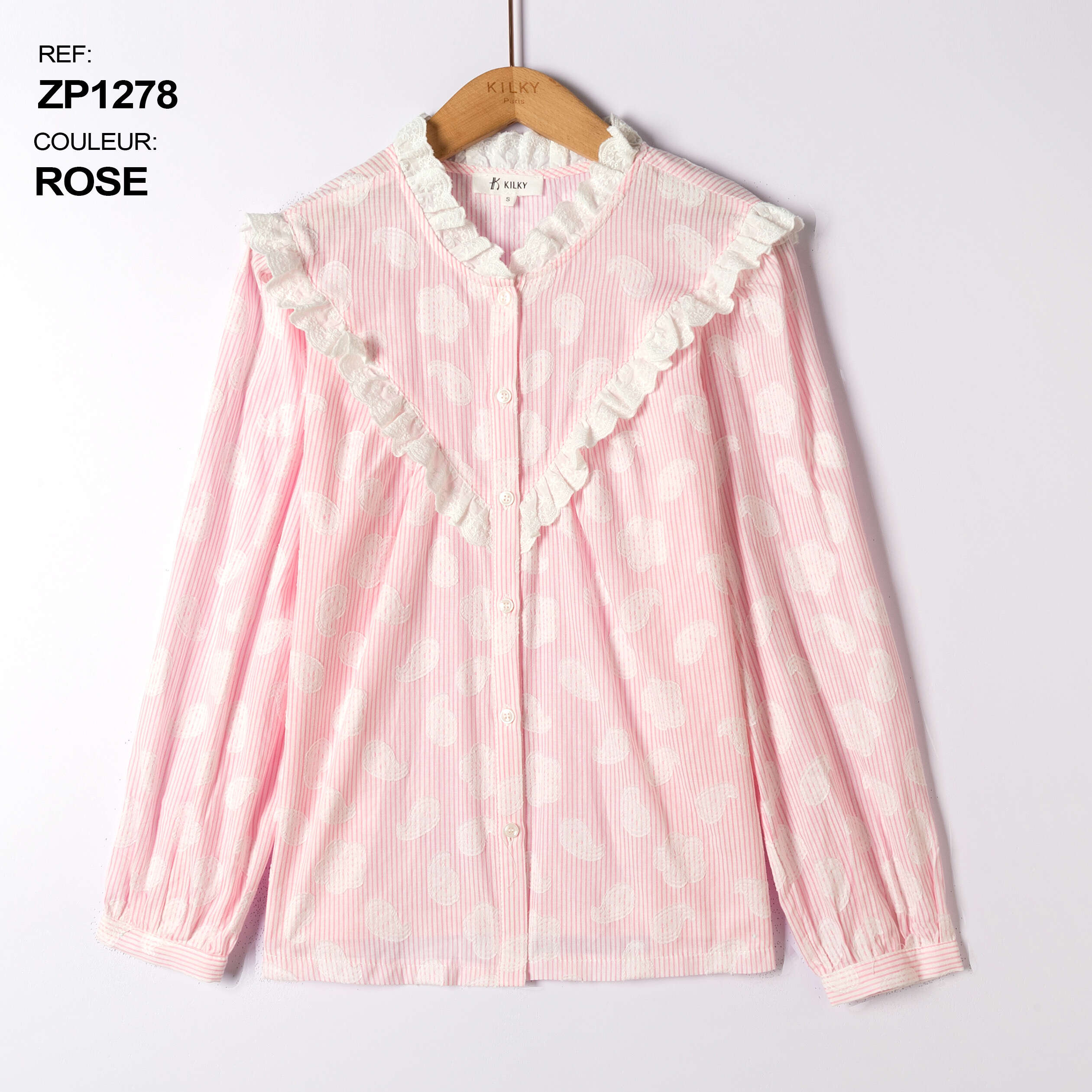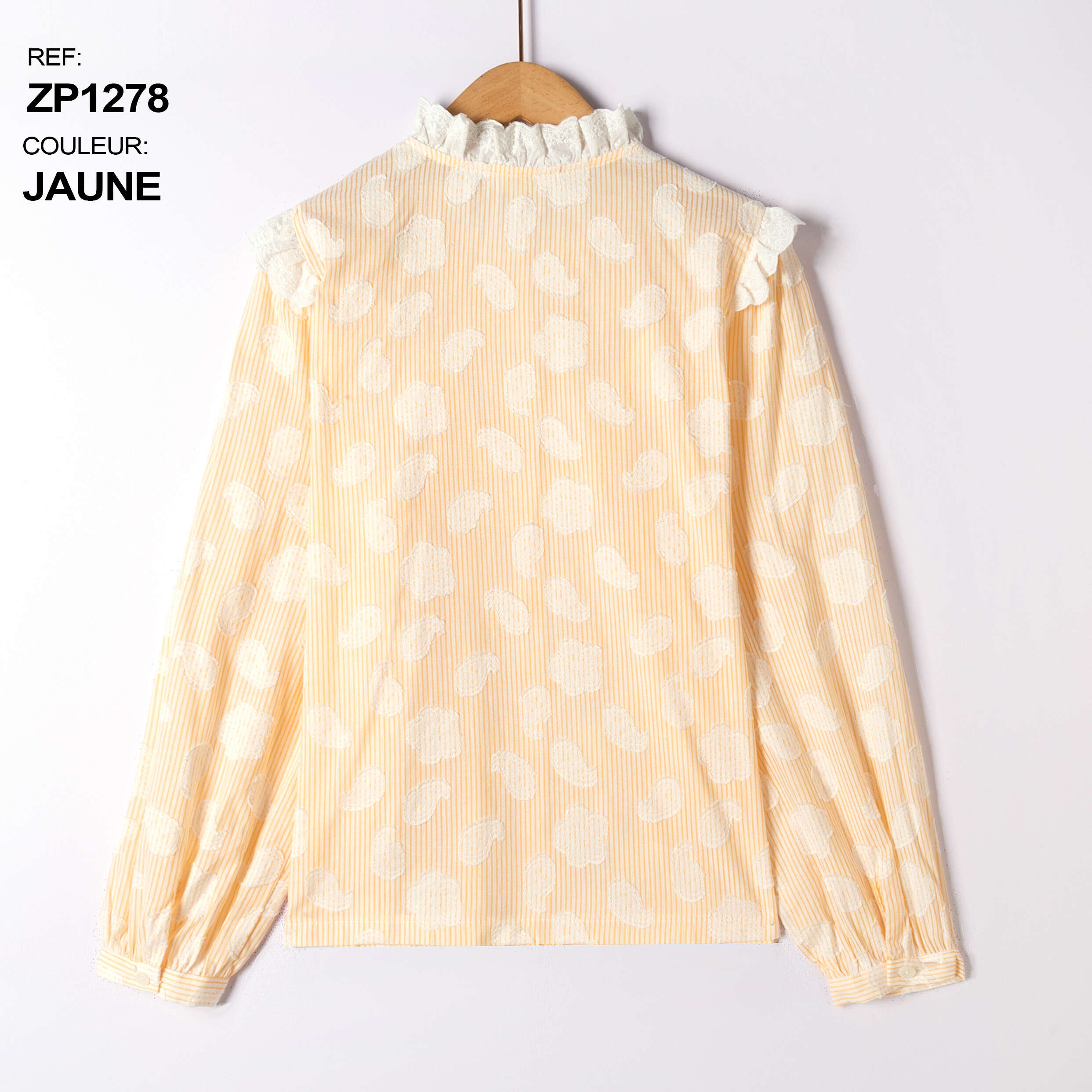 Koszule GIMS to idealny wybór dla butików i sklepów, które pragną wyróżnić swoją ofertę romantycznym twistem. Model ten zachwyca nie tylko subtelnym wzorem i kobiecymi falbankami, ale także komfortem noszenia dzięki przewiewnemu i wysokiej jakości materiałowi. Dostępny w trzech modnych kolorach: żółtym, różowym i błękitnym, co daje szerokie możliwości stylizacji zarówno na co dzień, jak i na specjalne okazje. Uniwersalne rozmiary pozwolą dopasować ten produkt do najnowszych potrzeb klientek, które cenią wygodę i styl w jednym. Koszula świetnie prezentuje się zarówno ze spodniami, jak i spódnicami – doskonała do pracy, na spotkania czy wiosenne spacery. Wzbogacona detalem falbanki podkreśli wyjątkowy charakter każdej kolekcji.