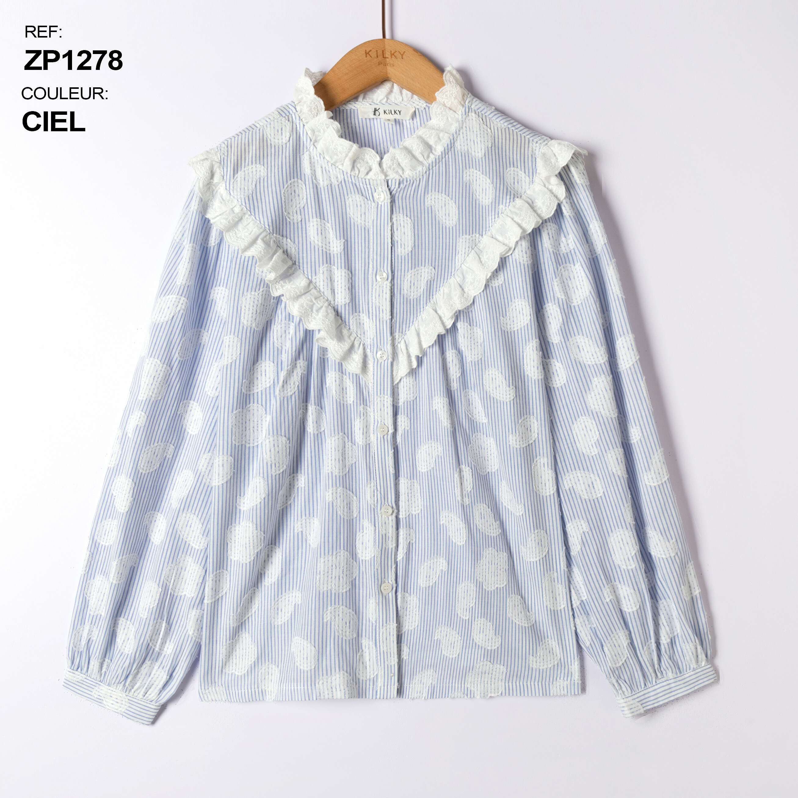 Koszule GIMS to idealny wybór dla butików i sklepów, które pragną wyróżnić swoją ofertę romantycznym twistem. Model ten zachwyca nie tylko subtelnym wzorem i kobiecymi falbankami, ale także komfortem noszenia dzięki przewiewnemu i wysokiej jakości materiałowi. Dostępny w trzech modnych kolorach: żółtym, różowym i błękitnym, co daje szerokie możliwości stylizacji zarówno na co dzień, jak i na specjalne okazje. Uniwersalne rozmiary pozwolą dopasować ten produkt do najnowszych potrzeb klientek, które cenią wygodę i styl w jednym. Koszula świetnie prezentuje się zarówno ze spodniami, jak i spódnicami – doskonała do pracy, na spotkania czy wiosenne spacery. Wzbogacona detalem falbanki podkreśli wyjątkowy charakter każdej kolekcji.