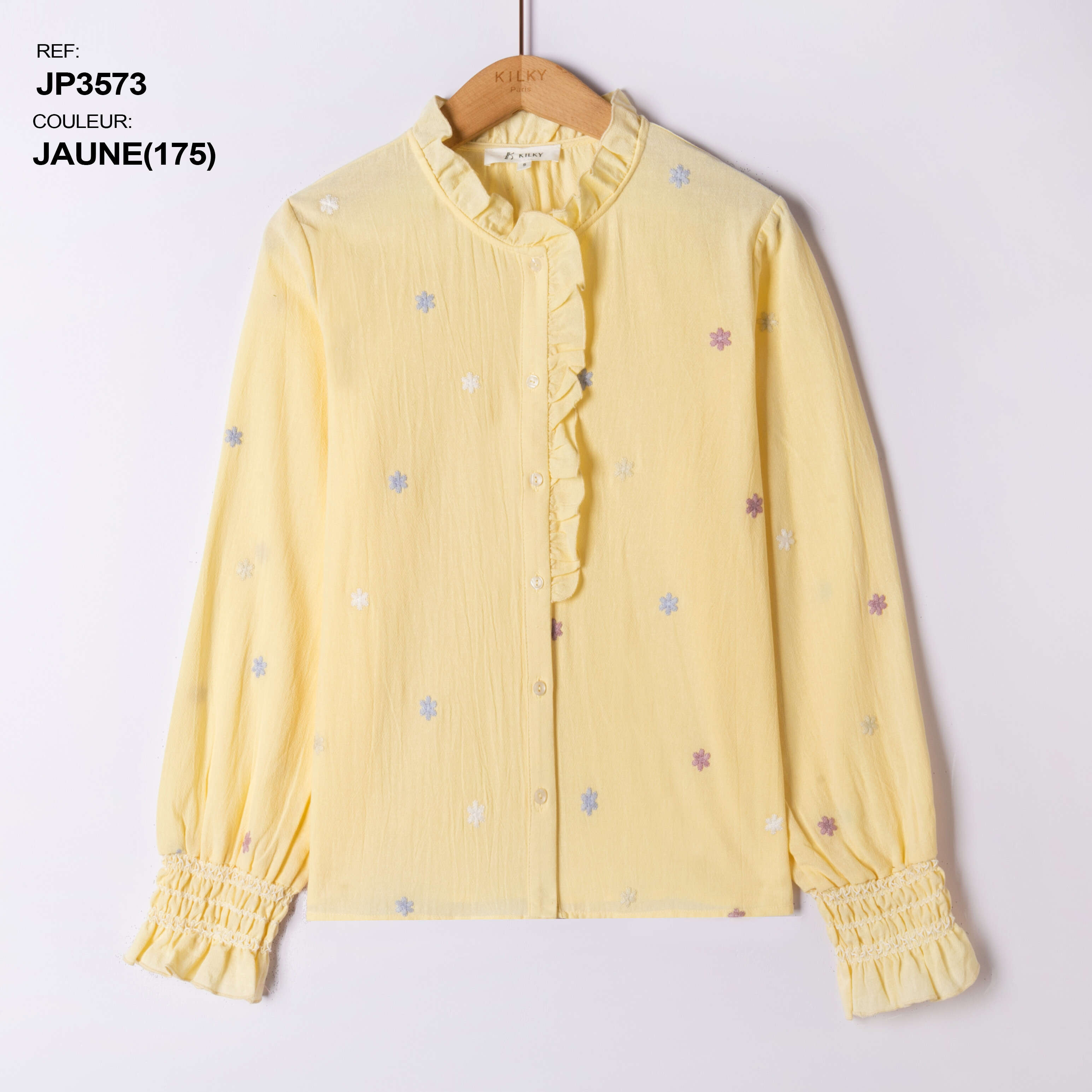 Koszule ERNESTA to propozycja, która zachwyci Twoje klientki lekkością oraz niebanalnym designem. Dostępna w modnych, kobiecych kolorach: żółtym, różowym oraz klasycznej bieli, pozwoli stworzyć wiele stylizacji na różne okazje. Wysokiej jakości materiał gwarantuje komfort noszenia przez cały dzień, a subtelne hafty z motywem kwiatowym dodają całości wyjątkowego uroku. Falbanki przy dekolcie i rękawach podkreślają romantyczny charakter koszuli, idealnie sprawdzając się zarówno na co dzień, jak i podczas spotkań biznesowych czy rodzinnych uroczystości. Różnorodność rozmiarów zapewnia dopasowanie do każdej sylwetki. Postaw na produkt, który wyróżni Twój asortyment!