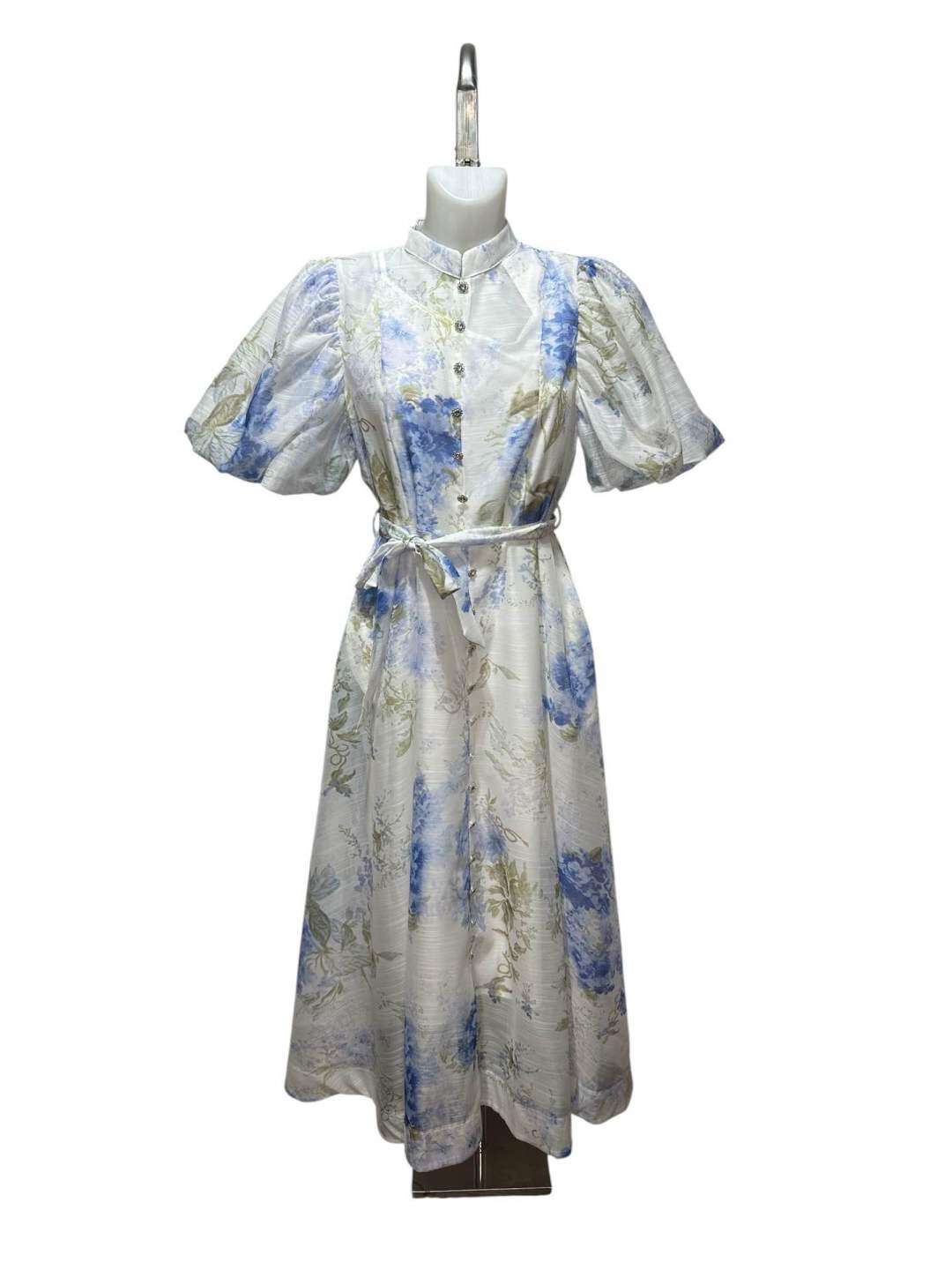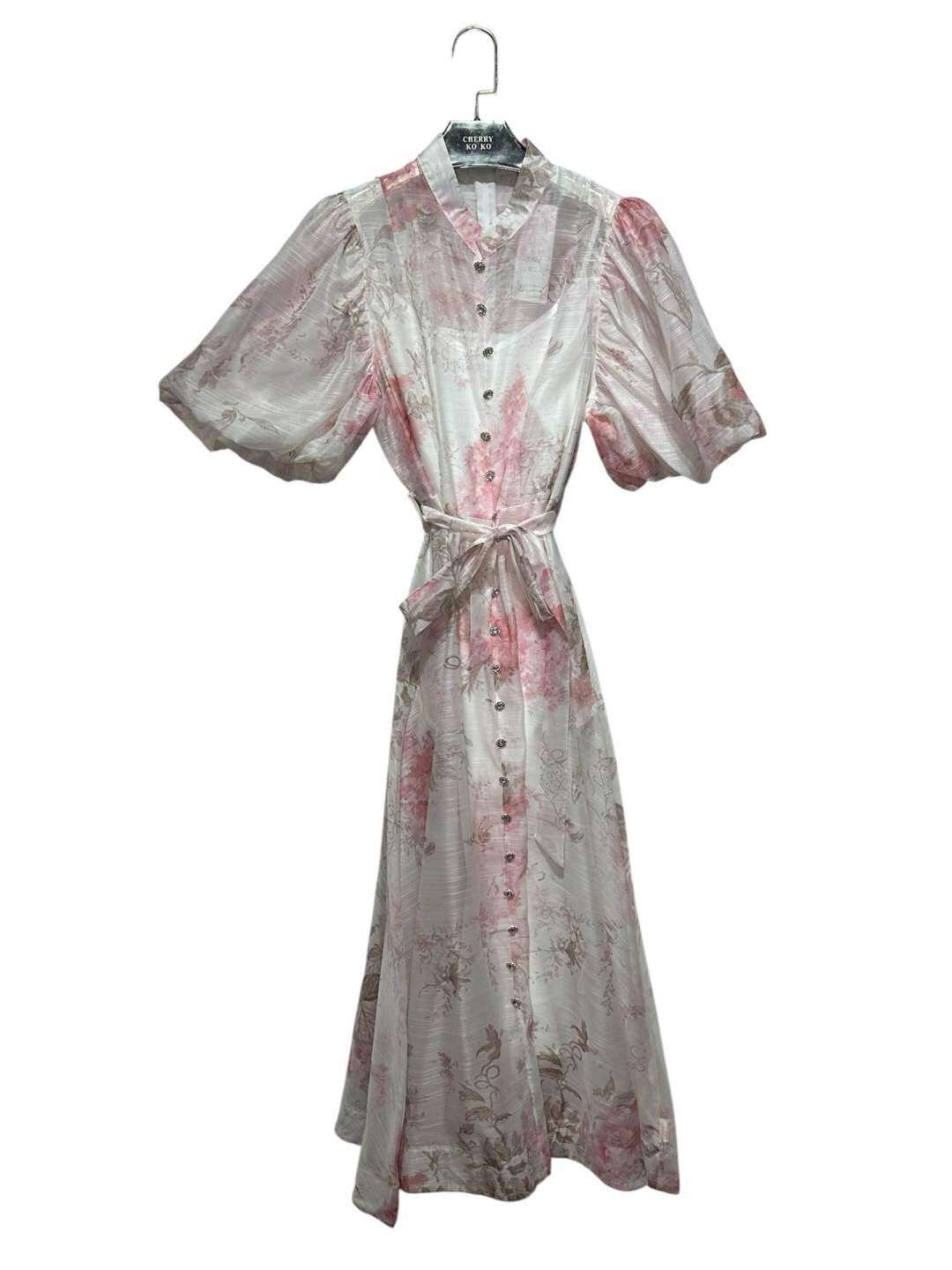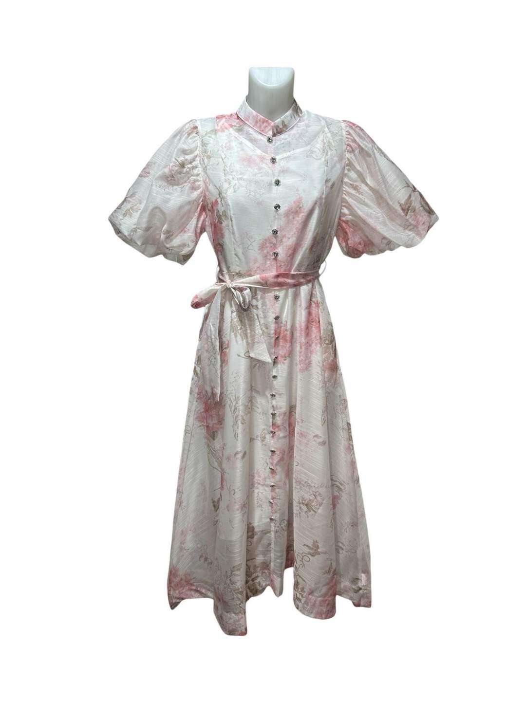 Zwiewna sukienka z lekkiego materiału, z wiązaniem w talii i stylowymi guziczkami, zapewnia swobodę ruchów oraz kobiecy, romantyczny look.