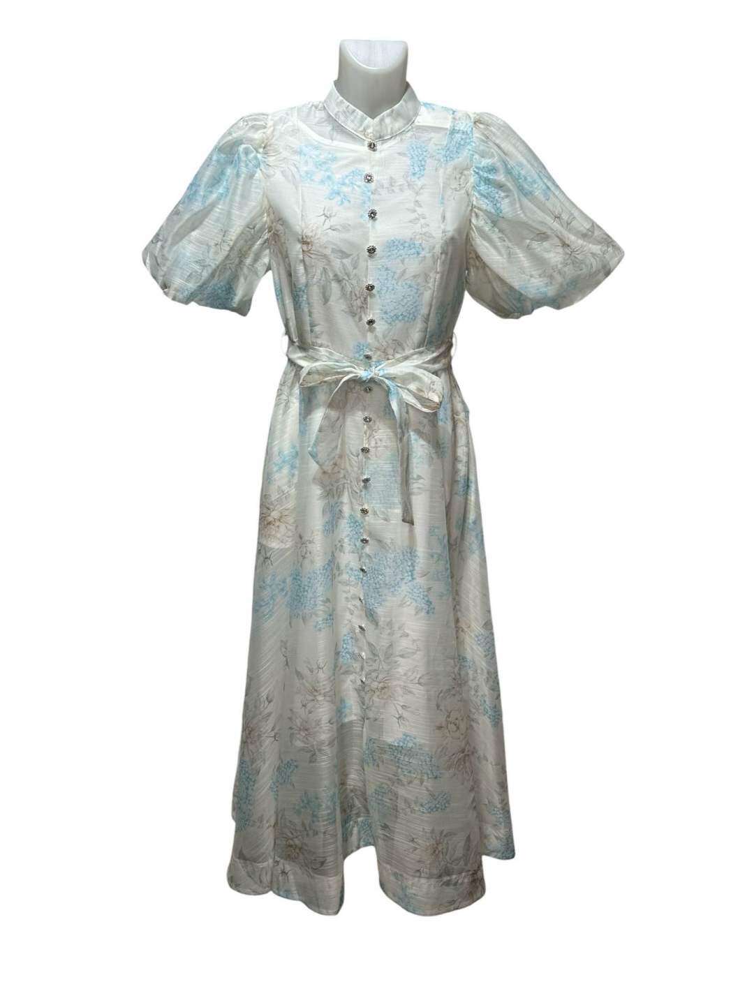 Zwiewna sukienka z lekkiego materiału, z wiązaniem w talii i stylowymi guziczkami, zapewnia swobodę ruchów oraz kobiecy, romantyczny look.