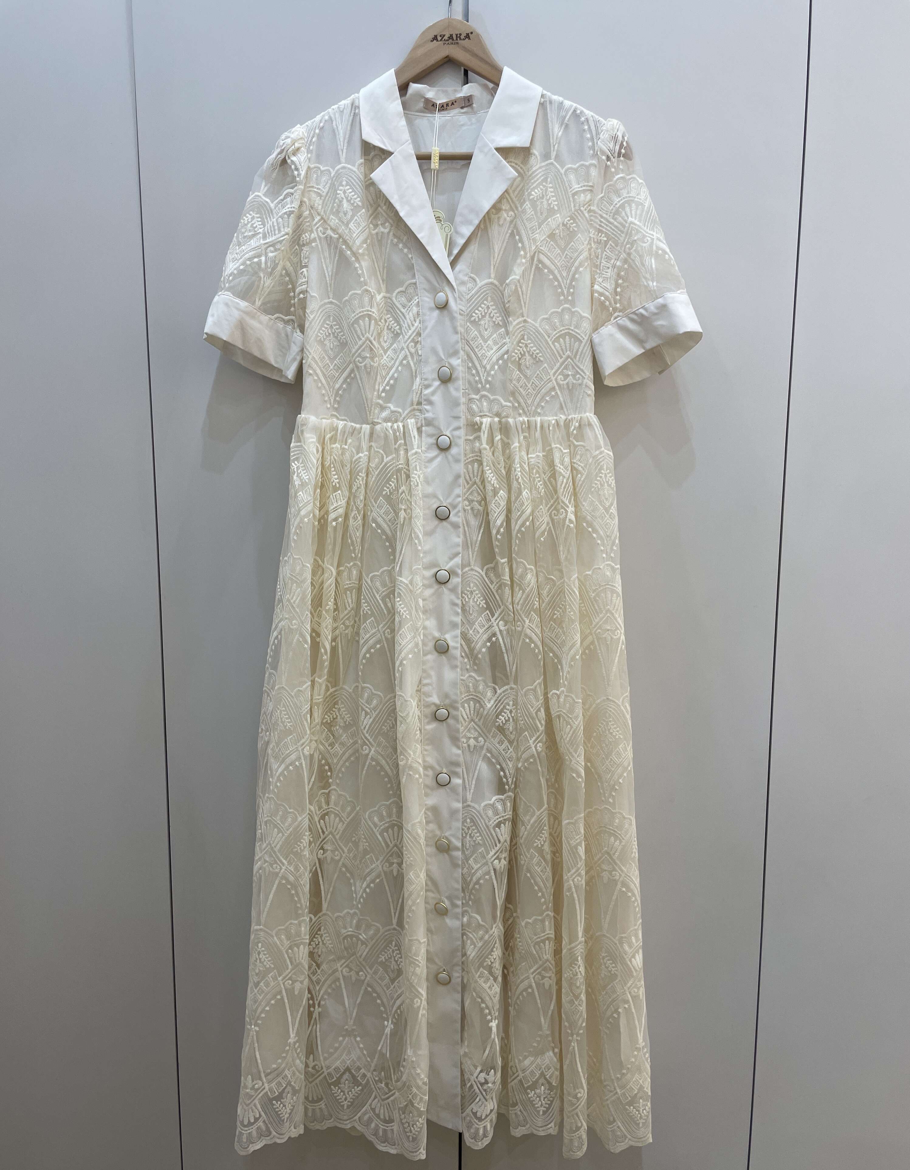 Sukienka TURYN to propozycja dla hurtowni, które poszukują wyjątkowych, eleganckich modeli na sezon wiosna-lato. Model dostępny w klasycznych kolorach – beżowym i białym – sprawdzi się zarówno w codziennych stylizacjach, jak i podczas wyjątkowych okazji, takich jak uroczystości rodzinne czy spotkania biznesowe. Delikatna, lekko prześwitująca koronka na całej długości oraz pasujący pasek pięknie podkreślą sylwetkę każdej kobiety. Krótkie rękawy i elegancki kołnierz dodają klasy, a zapięcie na guziki gwarantuje komfort oraz modny, uniwersalny look. Starannie dobrane materiały zapewniają wygodę i trwałość nawet przy intensywnym użytkowaniu. Dostępna w pełnej rozmiarówce – idealna do szerokiego asortymentu sklepu!