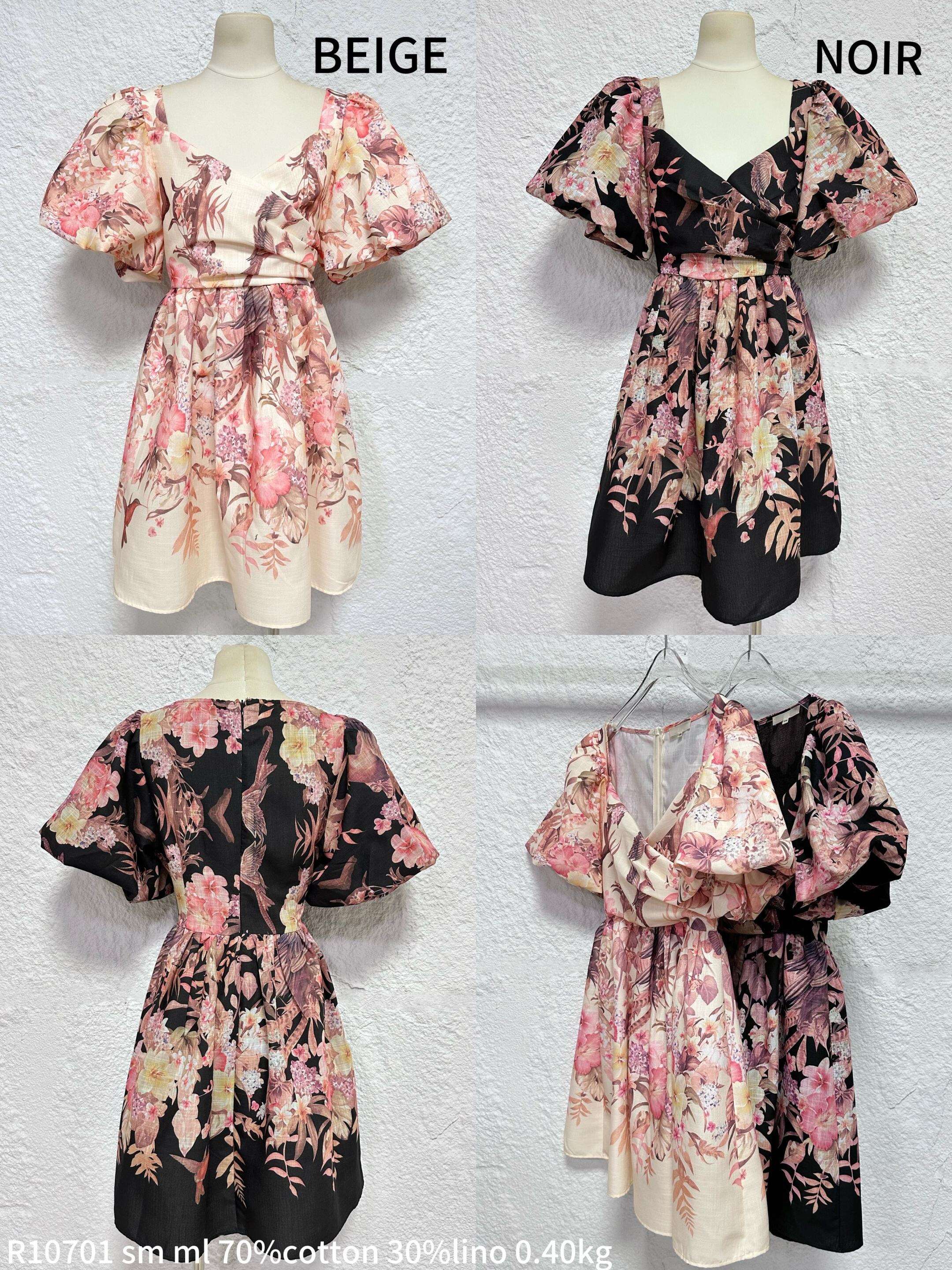 Sukienka FLOWERY to doskonały wybór do Twojej hurtowni! Model dostępny w klasycznych kolorach czarnym oraz beżowym, ozdobiony modnym, florystycznym wzorem. Wysoka zawartość naturalnych włókien (70% bawełna, 30% len) zapewnia przewiewność, komfort i trwałość na lata. Bufiaste, krótkie rękawy oraz delikatnie rozszerzany dół podkreślają sylwetkę, tworząc romantyczny look – idealny zarówno do casualowych, jak i letnich, bardziej eleganckich stylizacji. Uniwersalny krój sprawdzi się na spotkania, spacery czy letnie przyjęcia. Ten model to pewny bestseller na nowy sezon – wybierz jakość, którą docenią Twoi klienci!