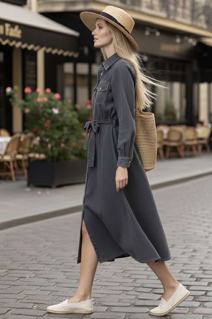 Sukienka ELORDEN to must have w każdej kolekcji hurtowej. Wykonana z wysokiej jakości materiału, dostępna w uniwersalnych kolorach jeansowym oraz grafitowym. Klasyczny fason z guzikami na całej długości oraz praktycznym paskiem podkreślającym talie zapewnia znakomite dopasowanie do różnych sylwetek. Długie rękawy można swobodnie podwinąć, co dodaje sukience casualowego charakteru, ale pozwala również wykorzystać ją do bardziej eleganckich stylizacji. Produkt idealny do sprzedaży hurtowej dla butików i sklepów online — modne detale i uniwersalność to gwarancja zainteresowania klientek, niezależnie od sezonu. Dostępne w szerokiej gamie rozmiarów.