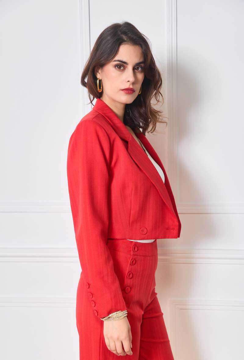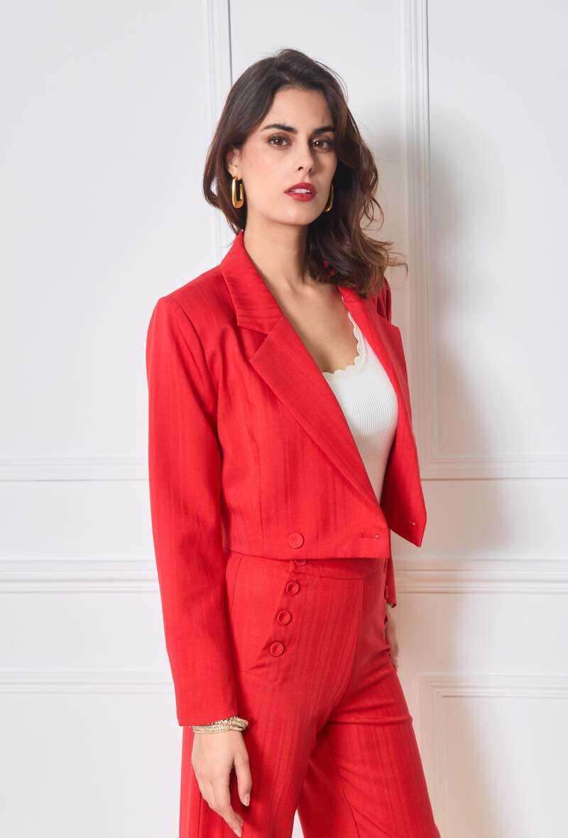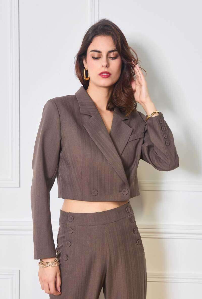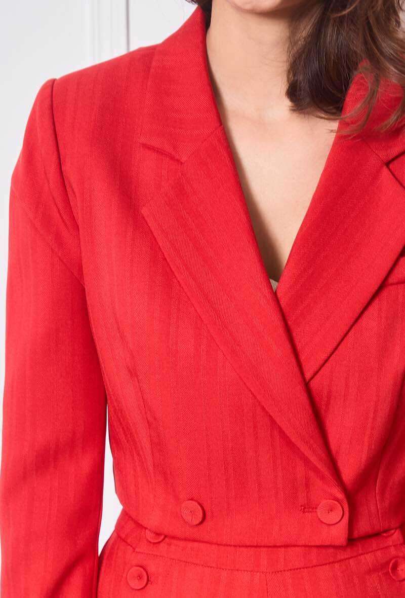 Klasyczny żakiet z eleganckim fasonem, lekko taliowany, wykonany z wysokiej jakości materiału – wygodny i stylowy na każdą okazję.