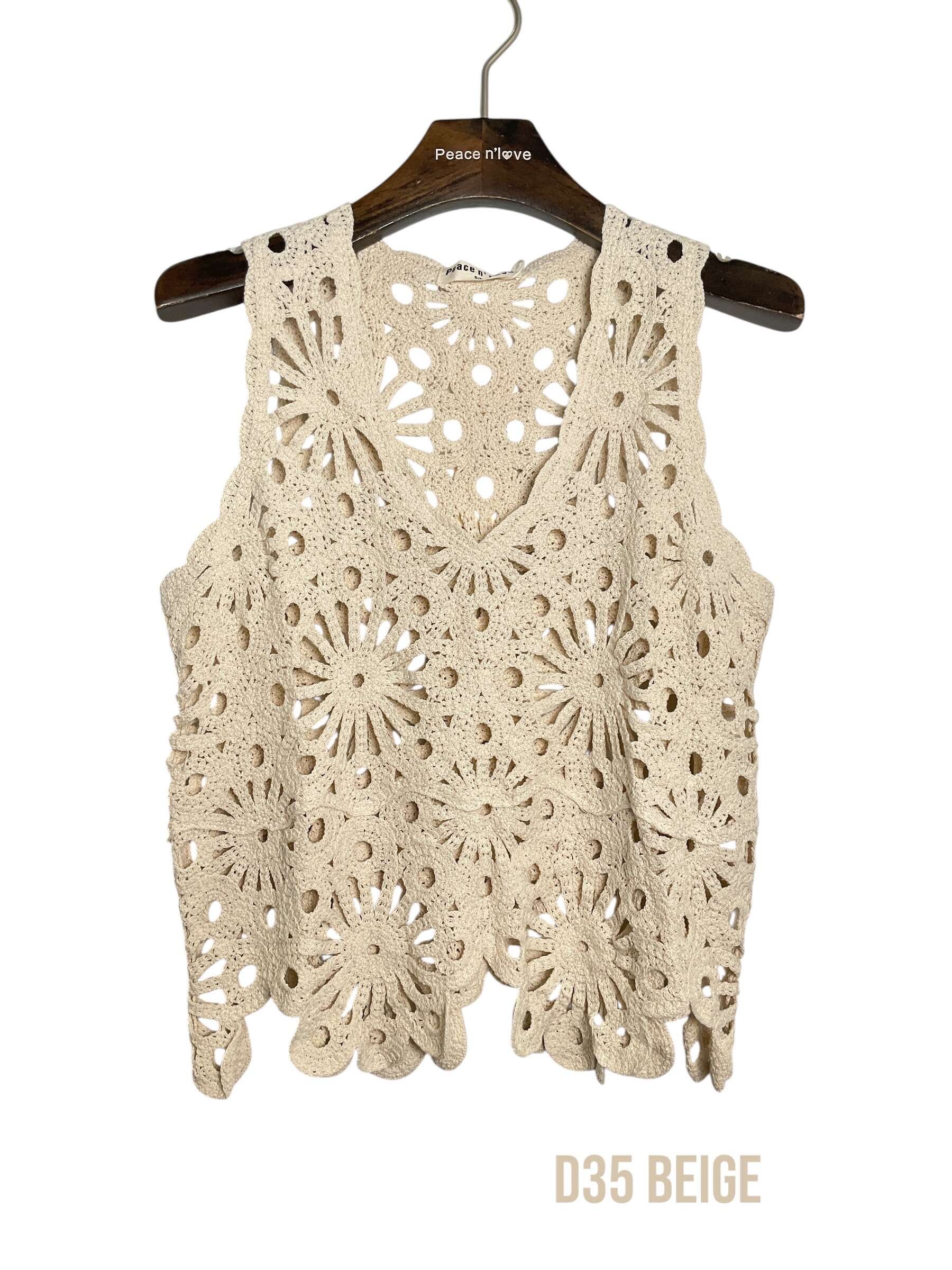 Ażurowa bluzka na ramiączkach, z motywem kwiatowym i efektownym wykończeniem, idealna na lato.