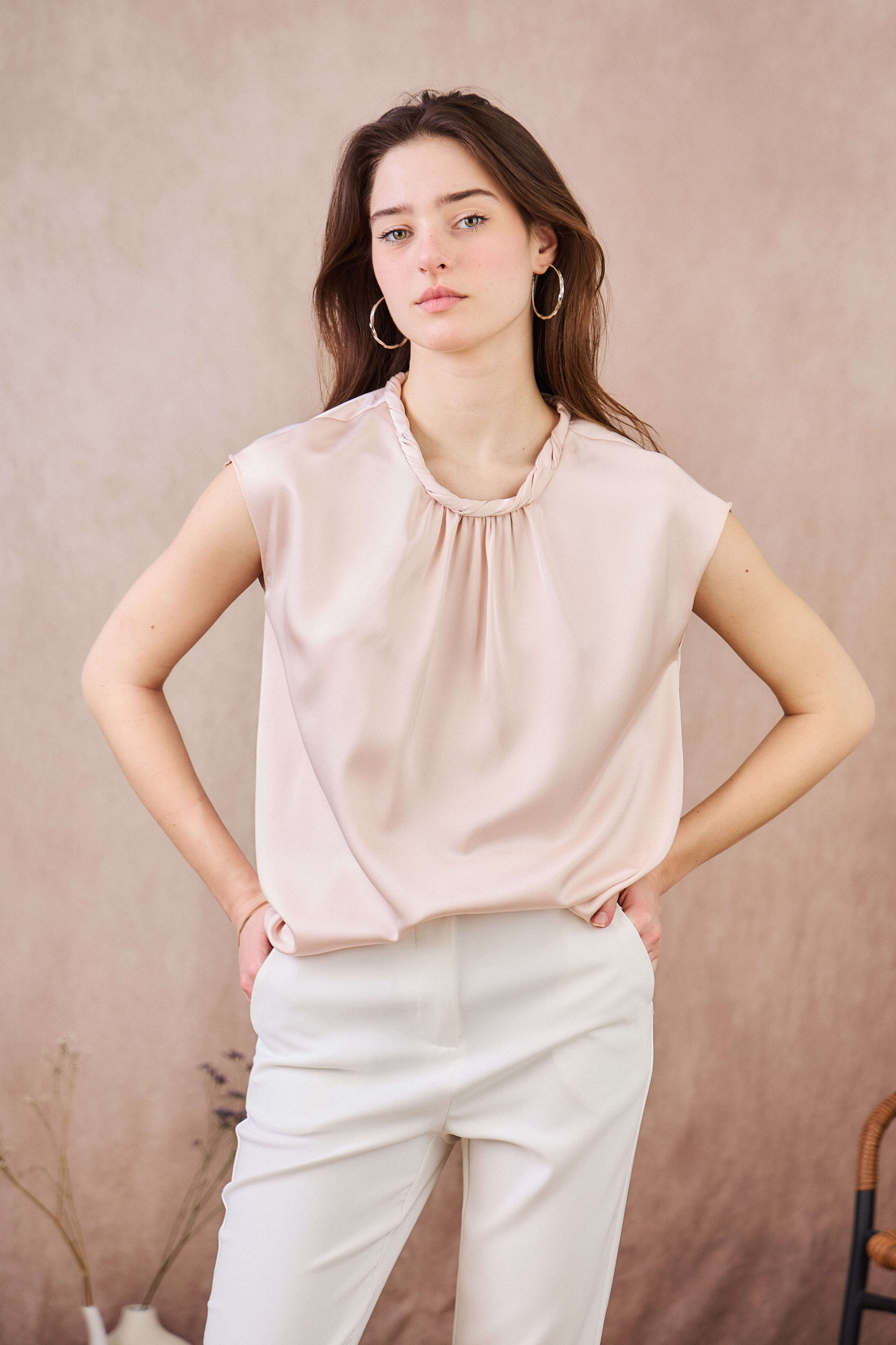 Stylowa koszula bez rękawów o luźnym kroju, wykonana z miękkiego, przyjemnego w dotyku materiału.