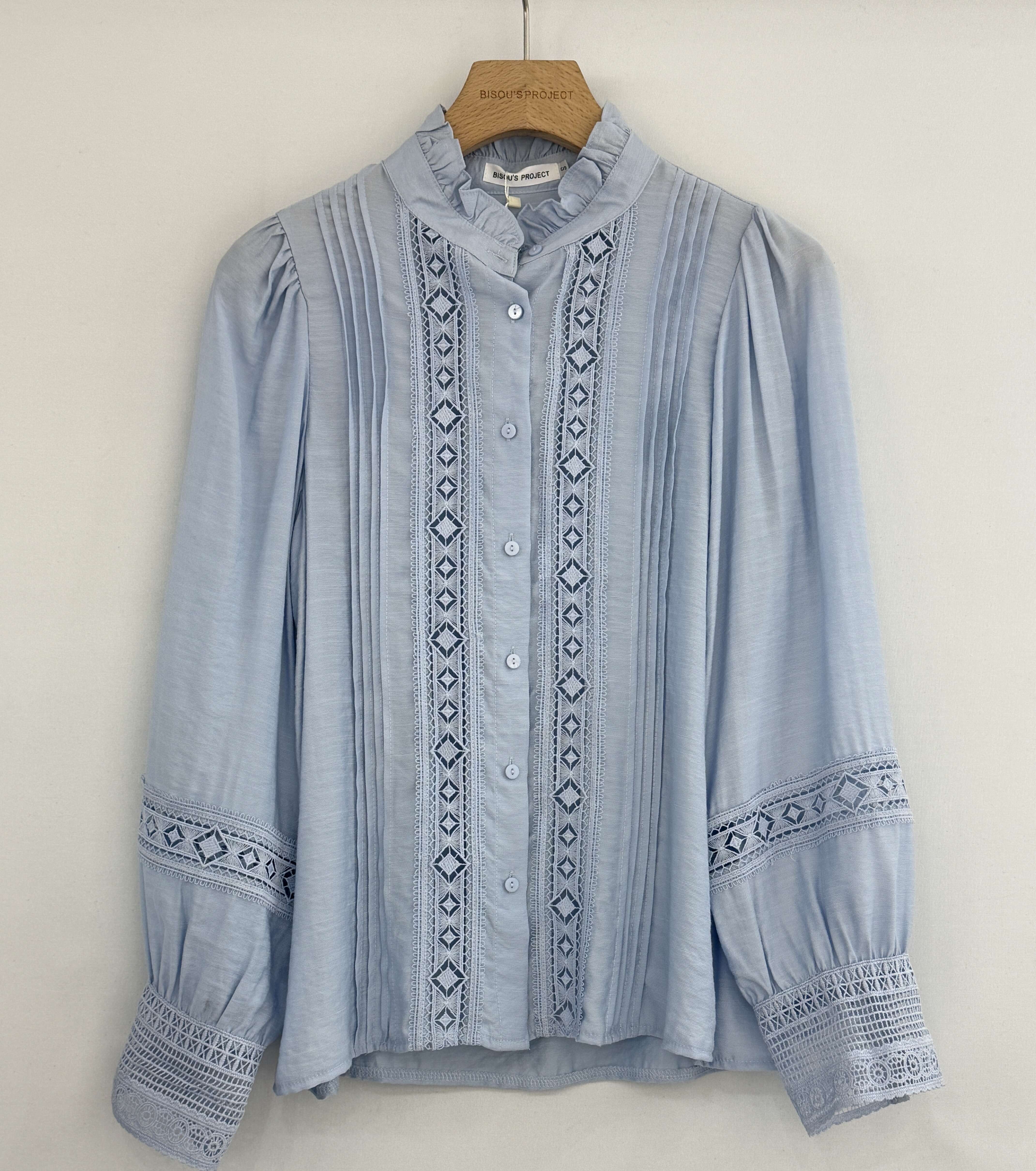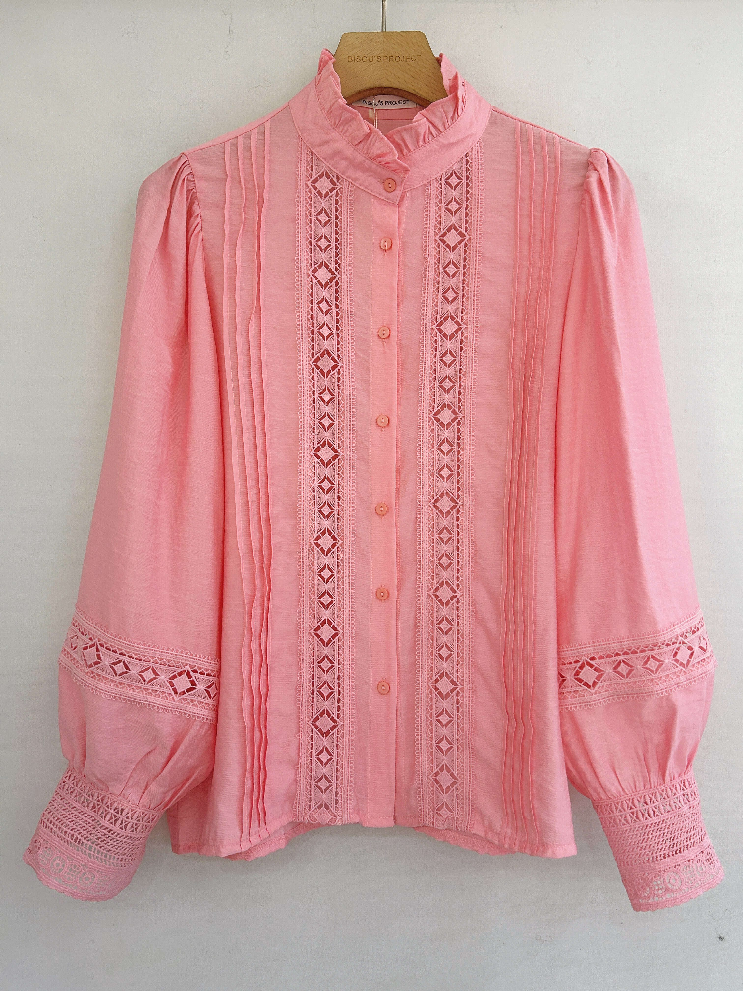 Koszula SAMANTA to propozycja dla miłośniczek stylowej elegancji. Model wykonany z wysokiej jakości tkaniny, zdobiony ażurowymi wstawkami i subtelnymi plisowaniami. Dostępna w pięciu modnych kolorach: biały, czarny, beż, błękitny oraz granat. Koszula znakomicie sprawdzi się zarówno w codziennych, jak i bardziej wyjściowych stylizacjach. Dzięki klasycznemu krojowi oraz ozdobnemu kołnierzowi doda uroku każdemu lookowi — zarówno z denimem, jak i elegancką spódnicą. Idealna na spotkania biznesowe, randki oraz wyjątkowe okazje. Różnorodność rozmiarów pozwoli dopasować ją do każdej klientki, co czyni ją bestsellerem w asortymencie hurtowni.
