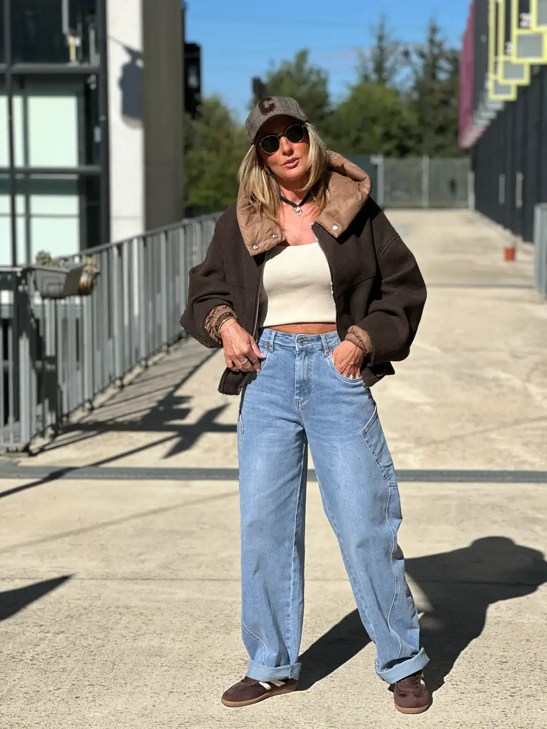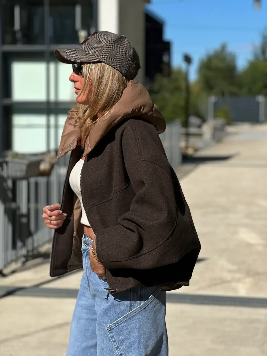 Modna kurtka z lekko oversize’owym krojem, pikowanym kołnierzem i wygodnym ściągaczem – gwarantuje styl, wygodę i ochronę przed chłodem.