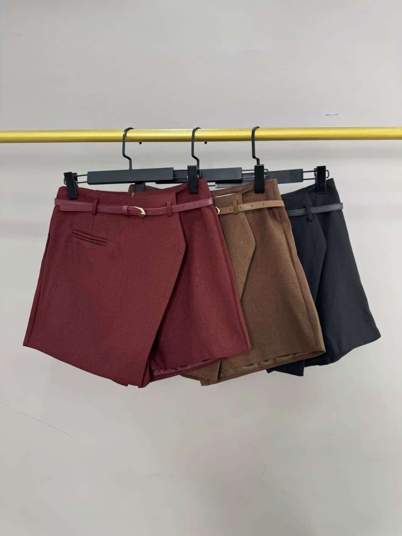 Eleganckie szorty z paskiem, klasyczny krój, modne kolory, 100% poliester – wygoda i styl na co dzień.