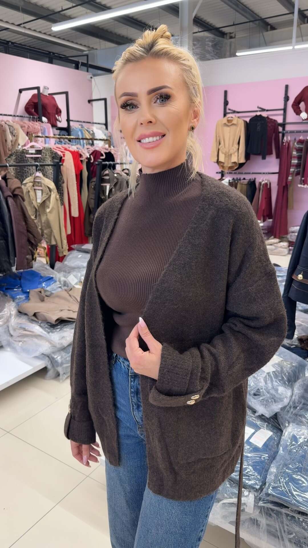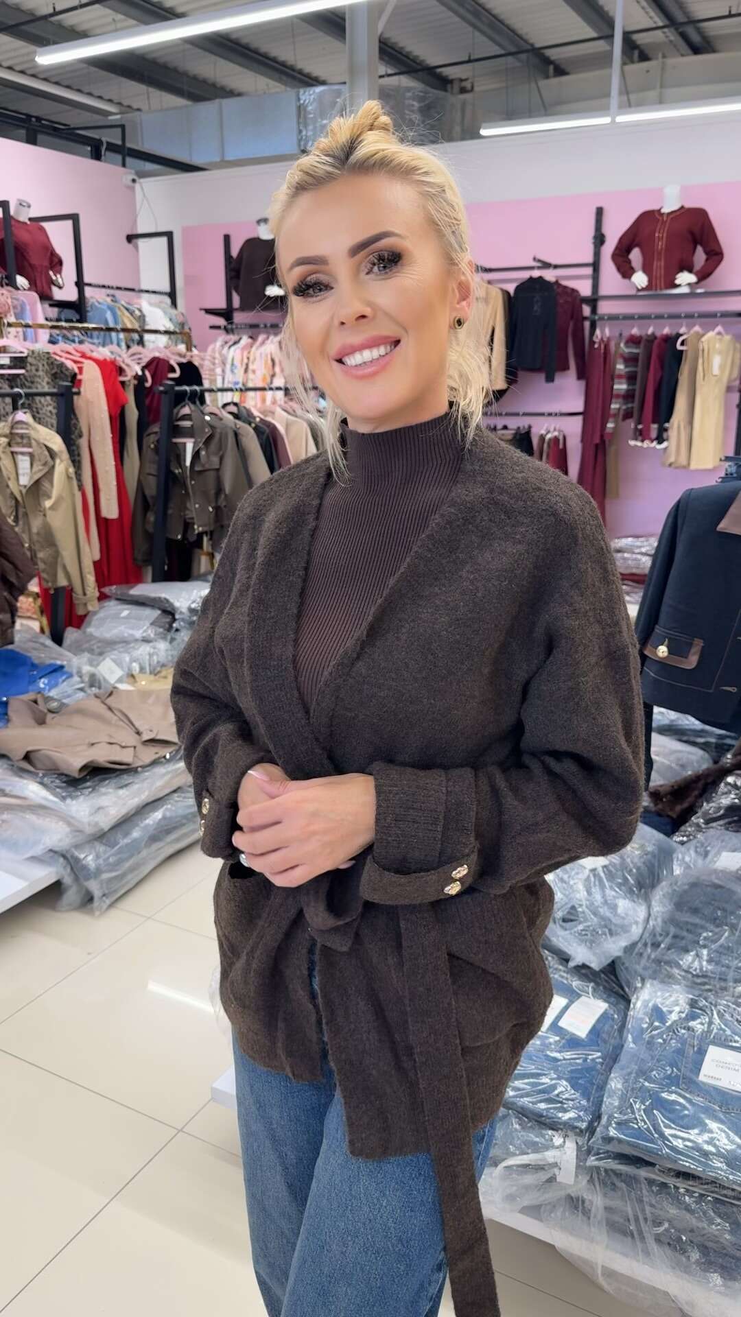 Swetry DREAM to propozycja dla klientek ceniących uniwersalność i stylowy wygląd. Produkt dostępny jest w modnych kolorach: czekoladowym i beżowym, które świetnie wpisują się w aktualne trendy. Sweter posiada wygodny, luźny krój z paskiem wiązanym w talii, co pozwala na swobodną regulację dopasowania, a ozdobne guziki na rękawach dodają mu wyjątkowego uroku. Wysokiej jakości dzianina gwarantuje komfort noszenia, miękkość oraz trwałość przez wiele sezonów. Swetry DREAM doskonale sprawdzą się zarówno w codziennych stylizacjach, jak i podczas biznesowych spotkań czy rodzinnych uroczystości. Świetna propozycja na jesień, zimę oraz wczesną wiosnę – must have w każdej hurtowni odzieży damskiej!