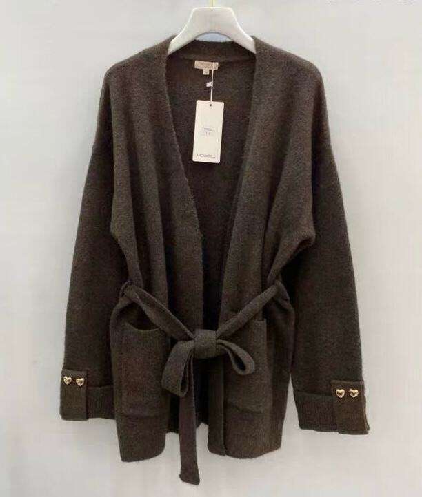 Luźny krój z wiązanym paskiem, ozdobne guziki na rękawach, miękka i przyjemna dzianina. Idealny na każdą okazję.