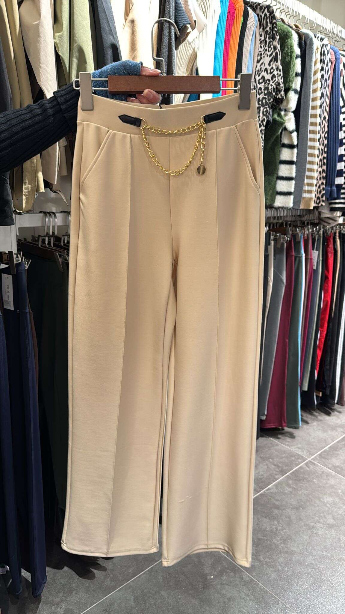 Spodnie EGGIES w kolorze cappuccino to propozycja dla wszystkich hurtowni, które cenią sobie modne i praktyczne rozwiązania. Model o klasycznym, prostym kroju wykonany został z wysokiej jakości materiału, który zapewnia wygodę noszenia przez cały dzień. Neutralna kolorystyka cappuccino doskonale sprawdzi się w wielu stylizacjach – od eleganckich zestawów biurowych po casualowe outfity z T-shirtem i sneakersami. Dostępne rozmiary pozwalają dopasować produkty do różnych sylwetek, co czyni je niezwykle wszechstronnym wyborem dla klientów. Postaw na modę, która łączy komfort z trendami i podnieś prestiż swojego asortymentu!