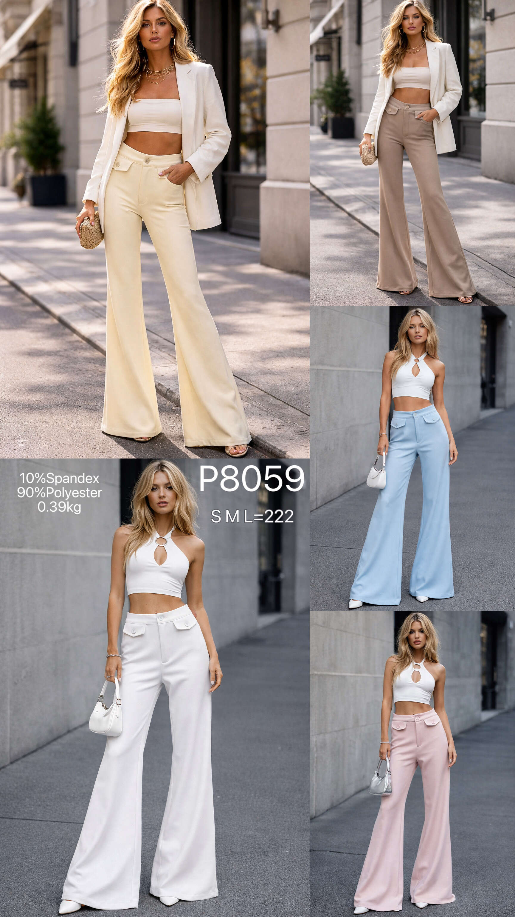 Spodnie YUTAH to hit każdej kolekcji – nowoczesny fason z szerokimi nogawkami gwarantuje kobiecy look, jednocześnie zapewniając komfort na co dzień. Wykonane z wysokiej jakości dzianiny (90% poliester, 10% spandex), świetnie dopasowują się do sylwetki i nie krępują ruchów. Ozdobne guziki w pasie nadają eleganckiego wyrazu, dzięki czemu spodnie sprawdzą się zarówno w stylizacjach casualowych, jak i biznesowych. Dostępność aż sześciu modnych kolorów: czarny, biały, cappuccino, różowy, błękitny oraz żółty, pozwala dopasować model do gustu każdej klientki. Szeroka rozmiarówka (S, M, L) sprawia, że spodnie są uniwersalne dla różnych typów sylwetek. Idealny produkt do hurtowej oferty sklepu z modą damską!